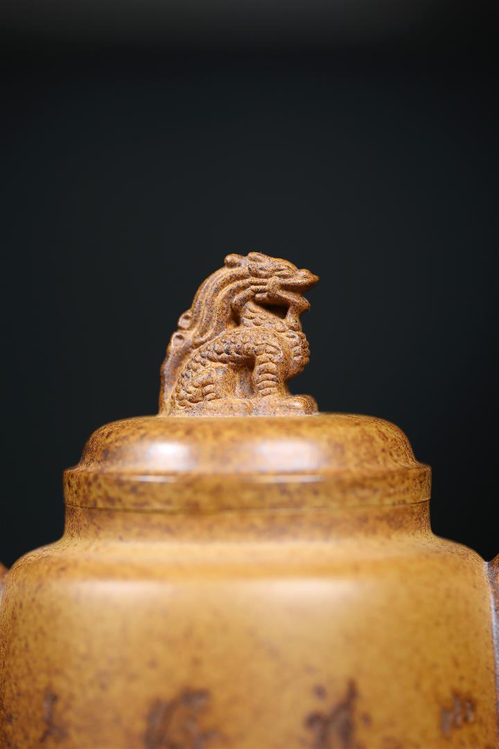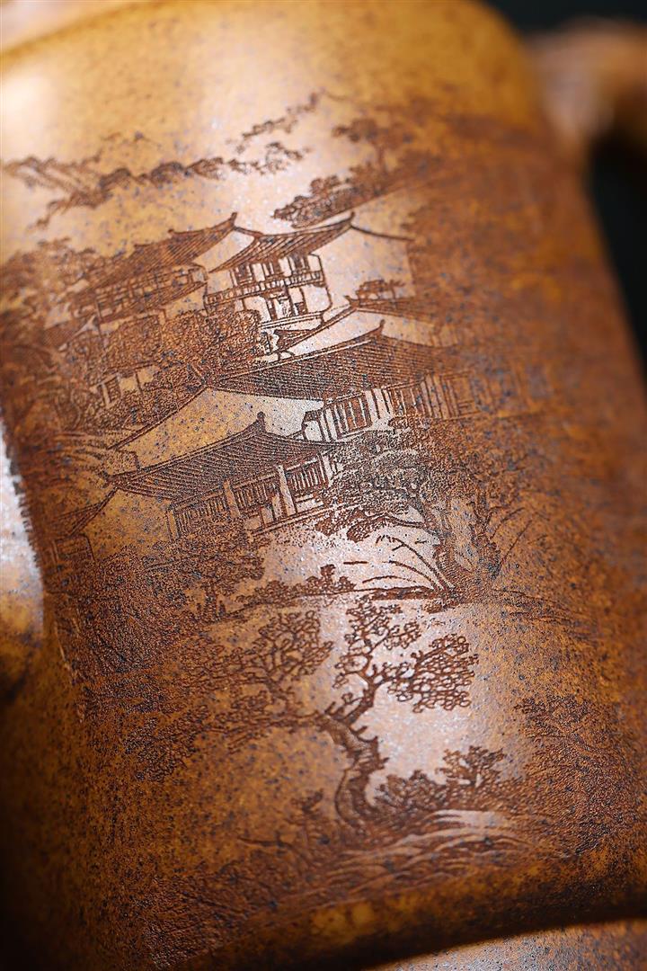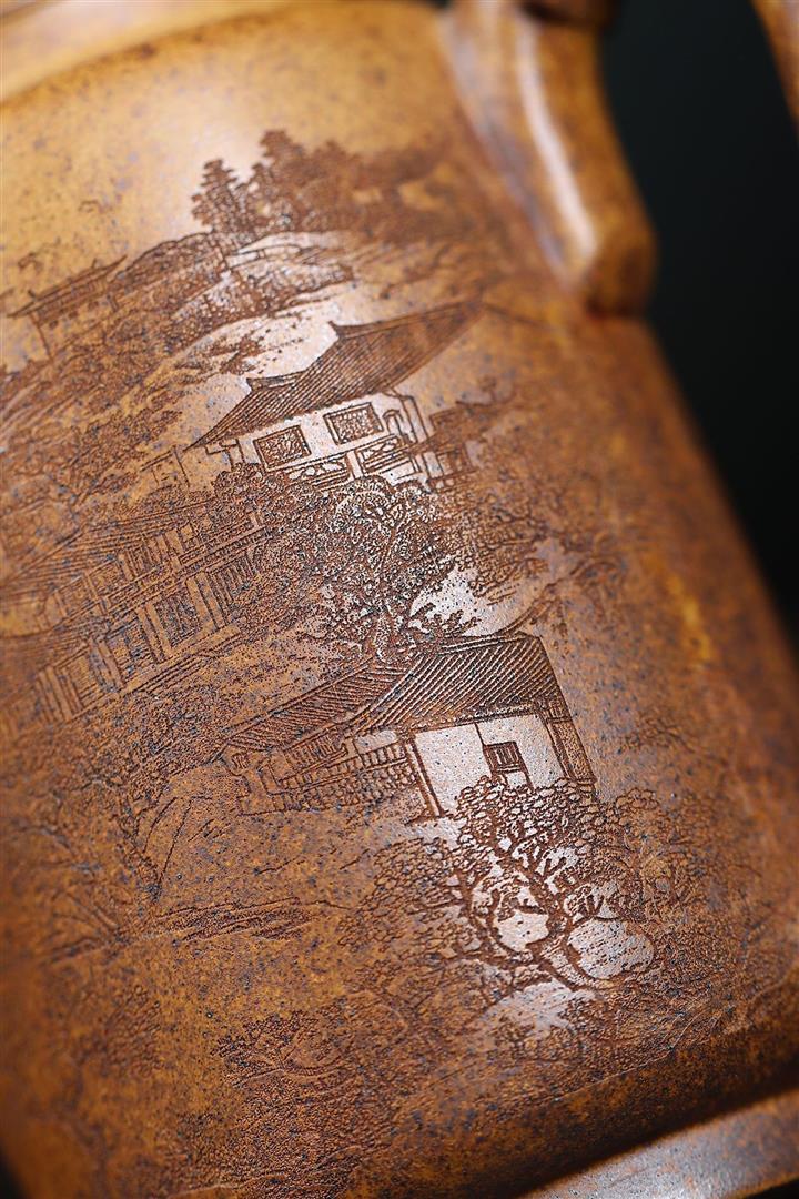 240cc原礦高溫柴燒龍骨金砂四方刻竹茶壺POT9103
