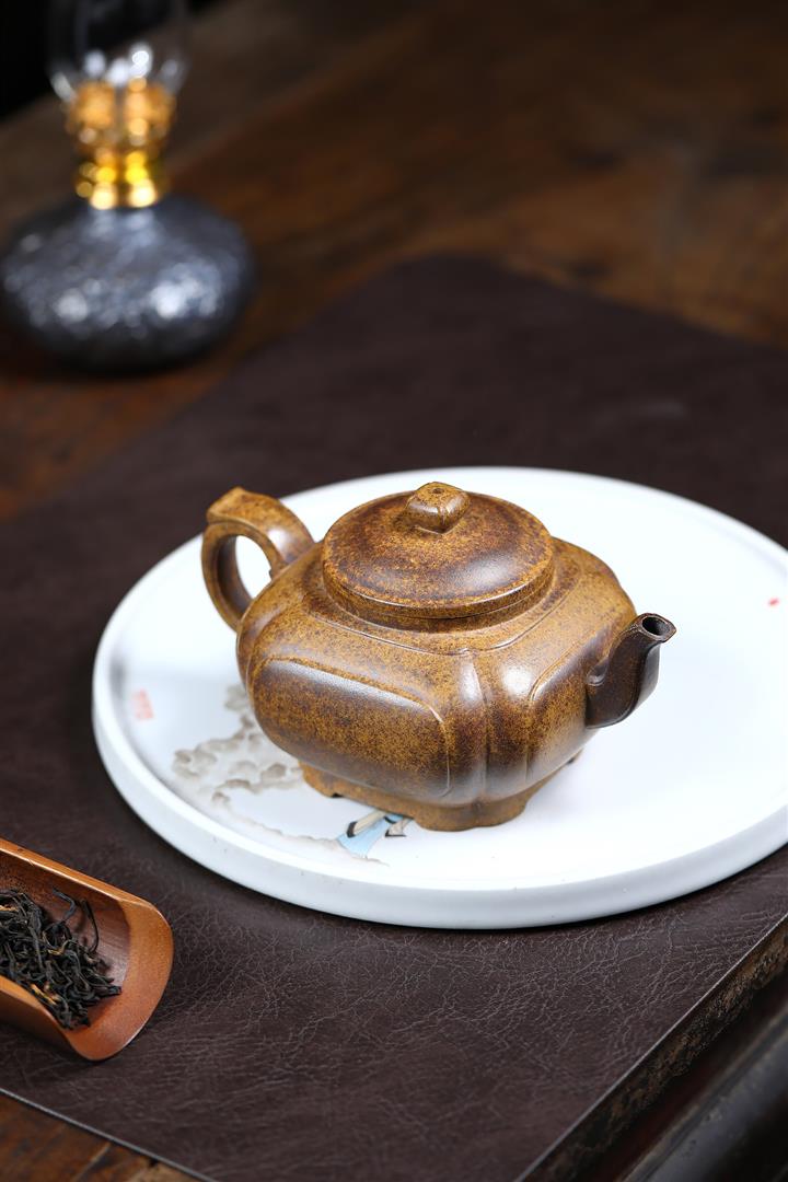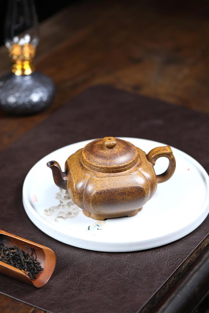 320cc原礦高溫柴燒龍骨金砂素心方圓茶壺POT9108