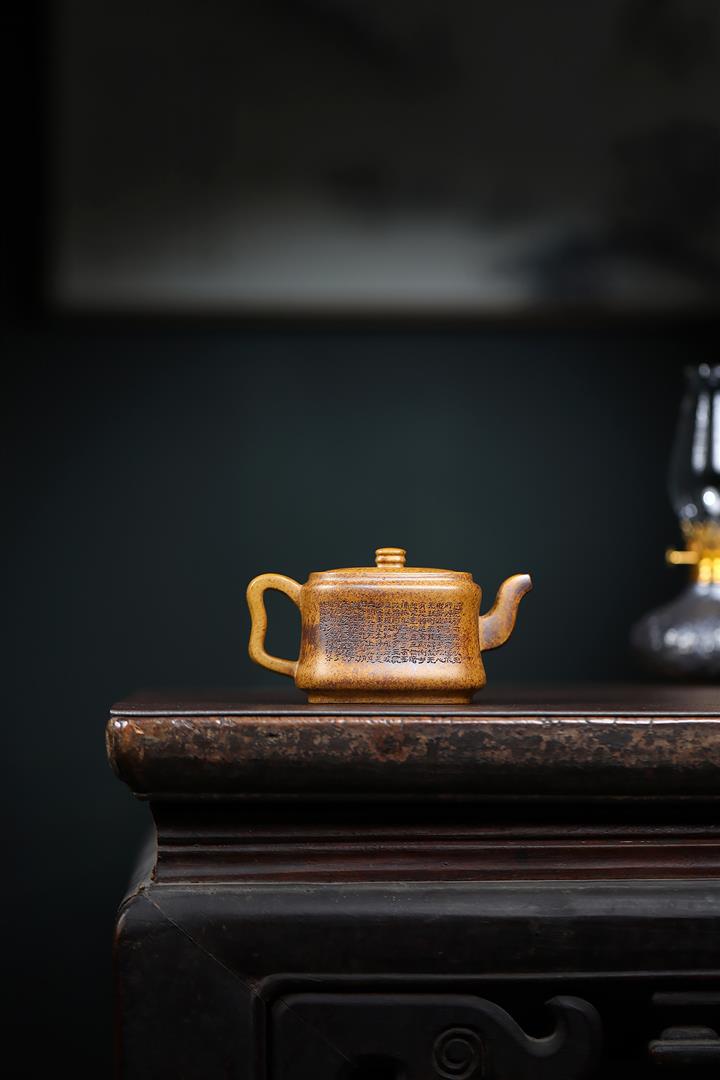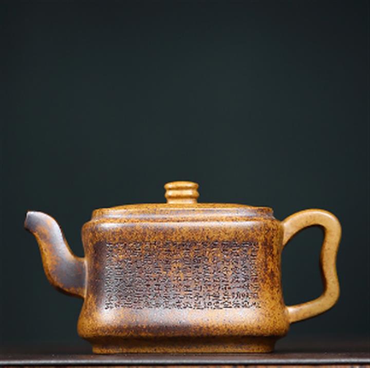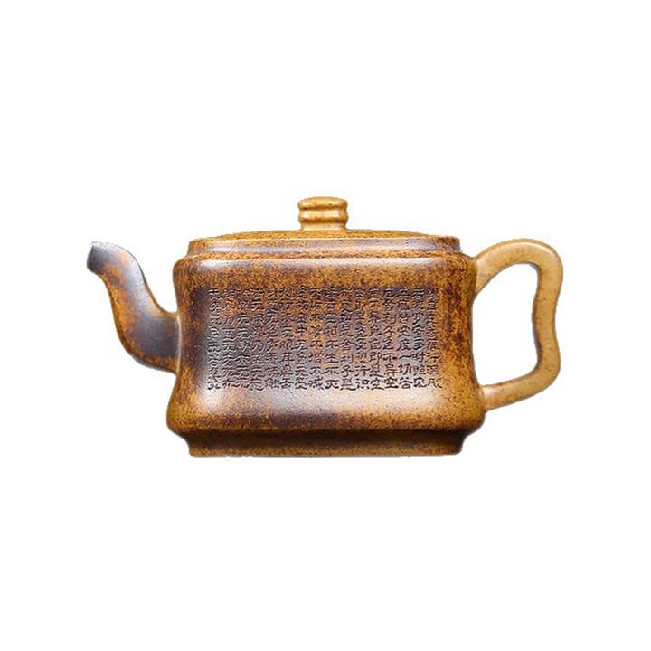 180cc原礦高溫柴燒龍骨金砂四方心經茶壺POT9107