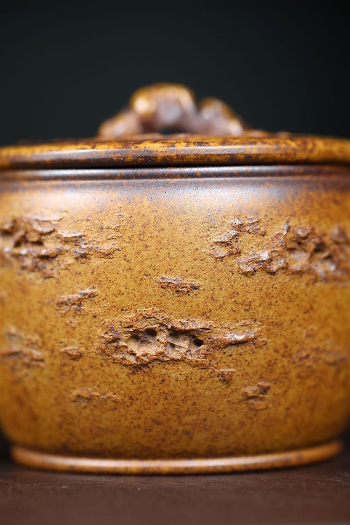 【泥料特點】砂土氣重,似淳實農民,日久使用,漸露鋒芒,養成變化,溫潤莊重。紫砂是壹種雙重氣孔結構的多孔性材質,氣孔微細,密度高。用紫砂壺沏茶,不失原味,且香不渙散,得茶之真香真味。紫砂使用越久,壺身色澤越發光亮照人,氣韻溫雅。紫砂壺長久使用器身會因撫摸擦拭,變得越發溫潤光澤。