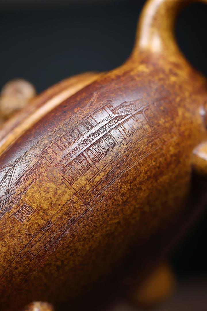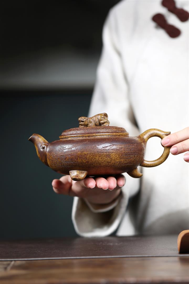 250cc原礦高溫柴燒龍骨金砂大展宏圖文旦茶壺POT9112