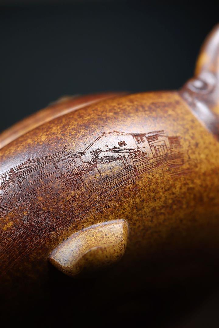 【作品介紹】此款壺形線條流暢,壺把,壺嘴,壺身壹氣呵成栩栩如生,是收藏把玩的好壺,泥料色澤古樸典雅,日久使用,漸露鋒芒,養成變化快,溫潤莊重,用其泡茶,使用的年代久,壺身就溫潤,泡出來的茶湯也就醇郁芳馨。