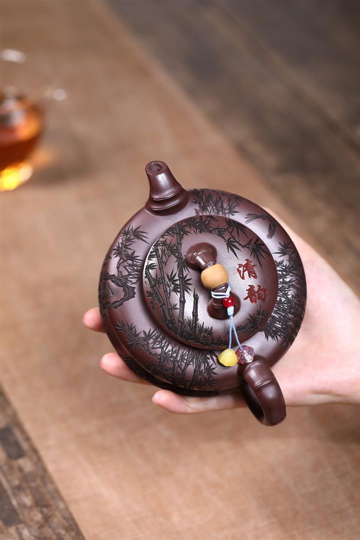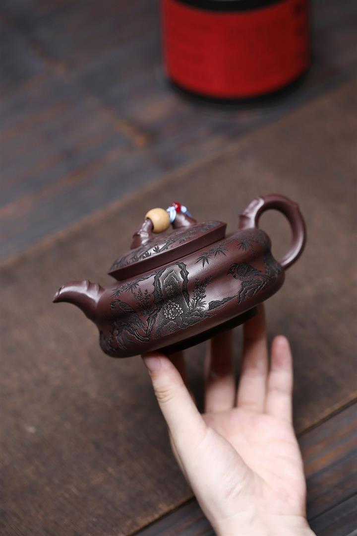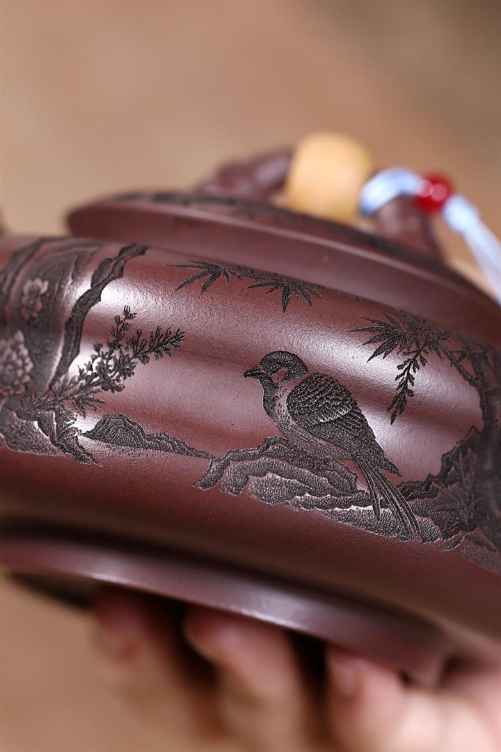 【作品介紹】此款壺形線條流暢,壺把,壺嘴,壺身壹氣呵成栩栩如生,是收藏把玩的好壺,泥料色澤古樸典雅,日久使用,漸露鋒芒,養成變化快,溫潤莊重,用其泡茶,使用的年代久,壺身就溫潤,泡出來的茶湯也就醇郁芳馨。