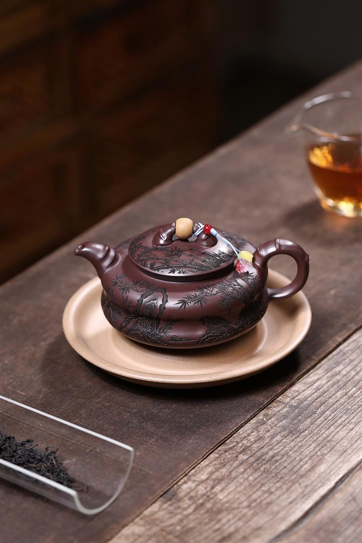 【泥料特點】砂土氣重,似淳實農民,日久使用,漸露鋒芒,養成變化,溫潤莊重。紫砂是壹種雙重氣孔結構的多孔性材質,氣孔微細,密度高。用紫砂壺沏茶,不失原味,且香不渙散,得茶之真香真味。紫砂使用越久,壺身色澤越發光亮照人,氣韻溫雅。紫砂壺長久使用器身會因撫摸擦拭,變得越發溫潤光澤。