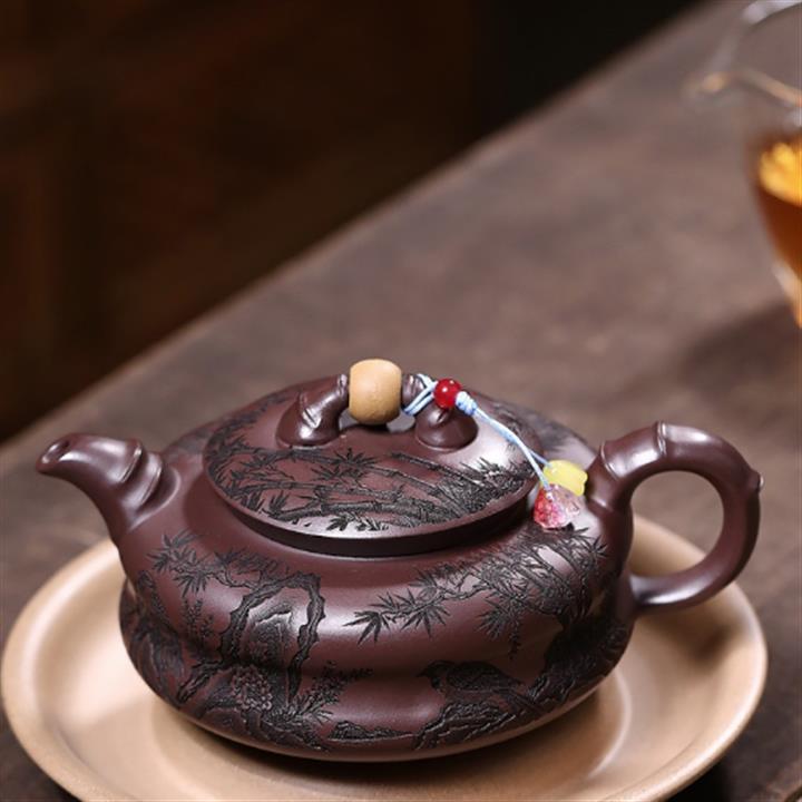 250cc原礦赤金朱泥石紋蓮華泡茶壺POT9126