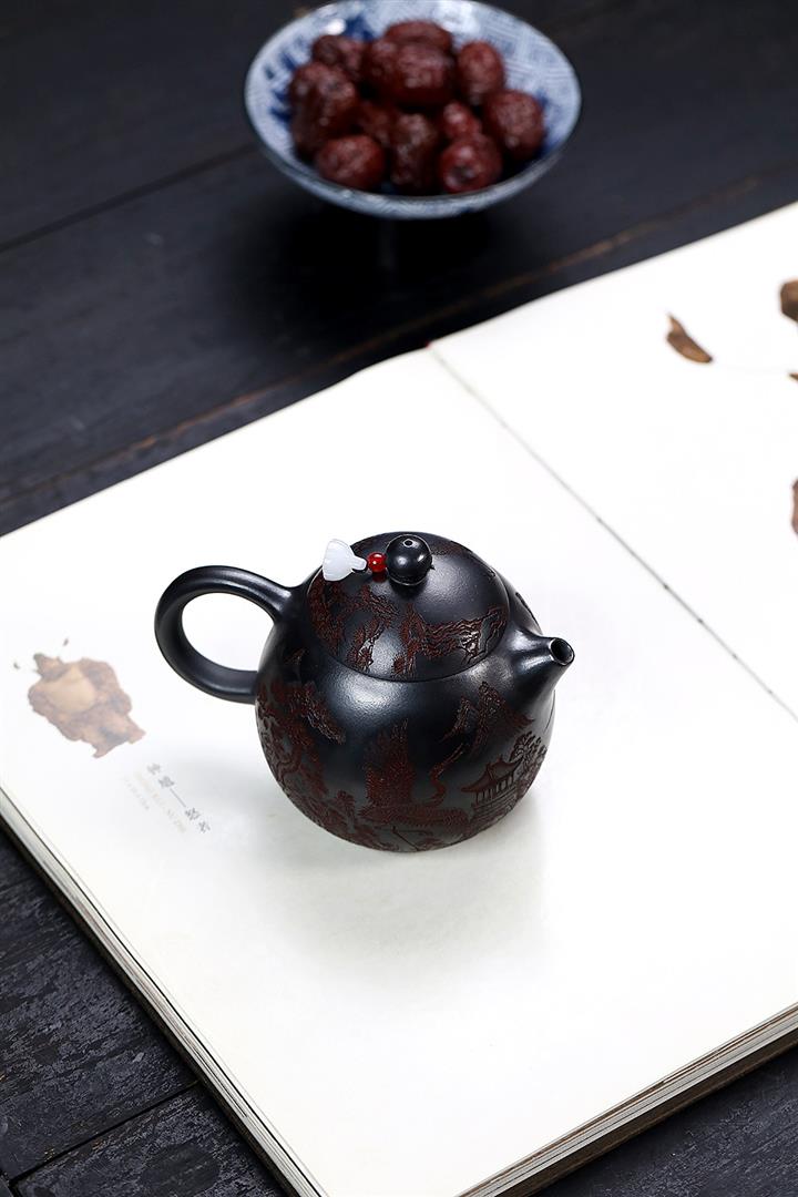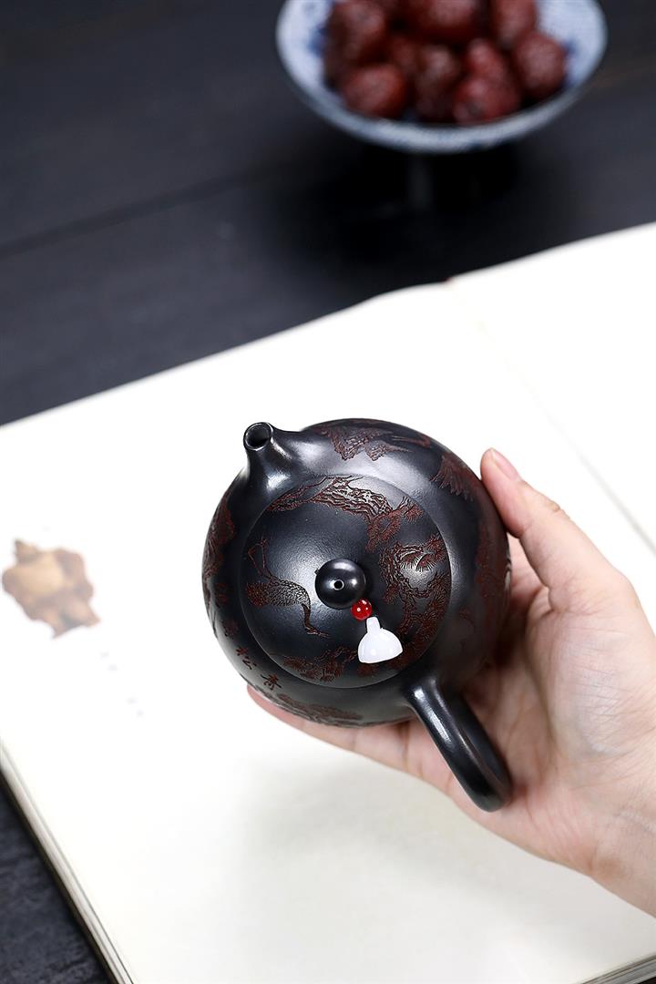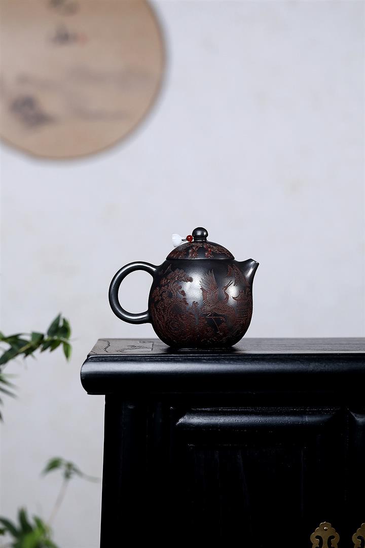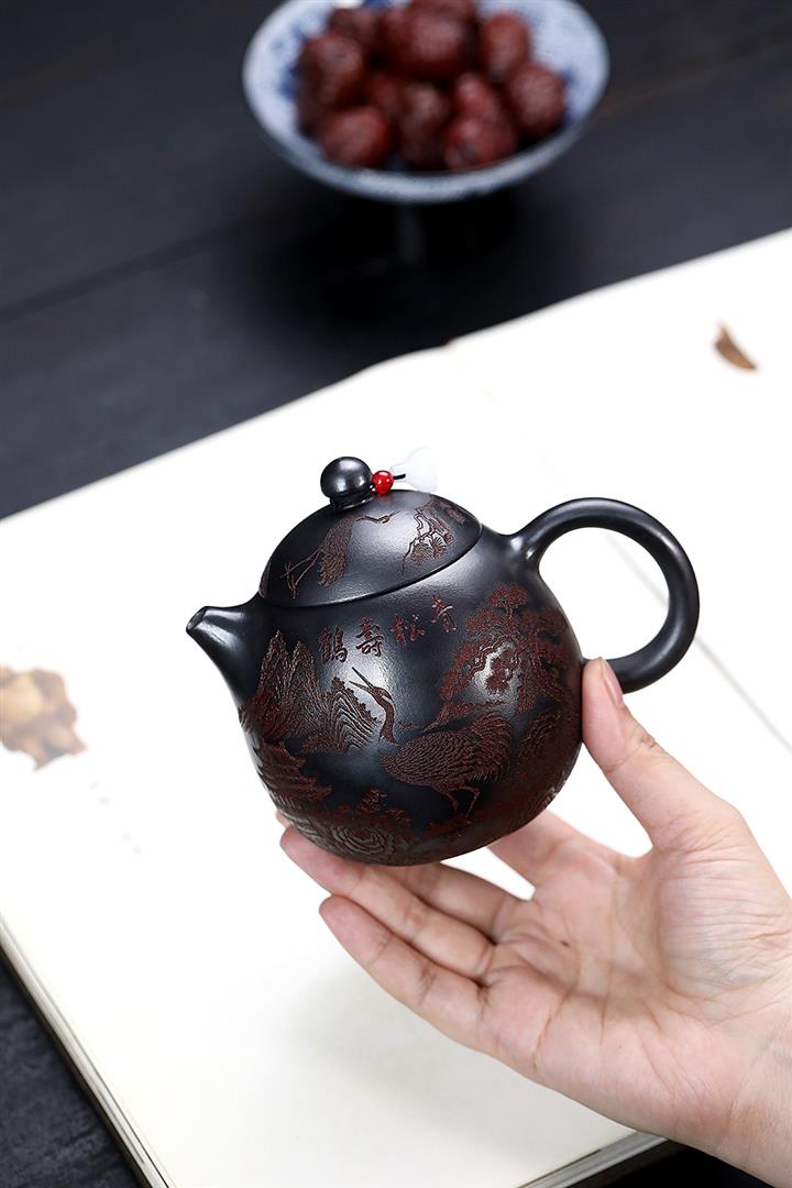 360cc原礦玄鐵石黃松鶴龍蛋泡茶壺POT9136