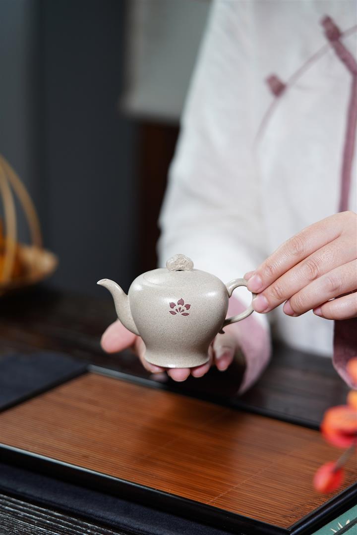 【泥料特點】砂土氣重,似淳實農民,日久使用,漸露鋒芒,養成變化,溫潤莊重。紫砂是壹種雙重氣孔結構的多孔性材質,氣孔微細,密度高。用紫砂壺沏茶,不失原味,且香不渙散,得茶之真香真味。紫砂使用越久,壺身色澤越發光亮照人,氣韻溫雅。紫砂壺長久使用器身會因撫摸擦拭,變得越發溫潤光澤。