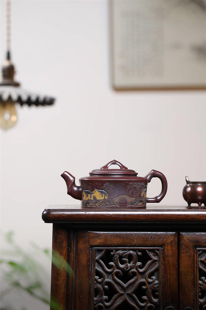 250cc原礦綠泥山水獨占鰲頭泡茶壺POT9156