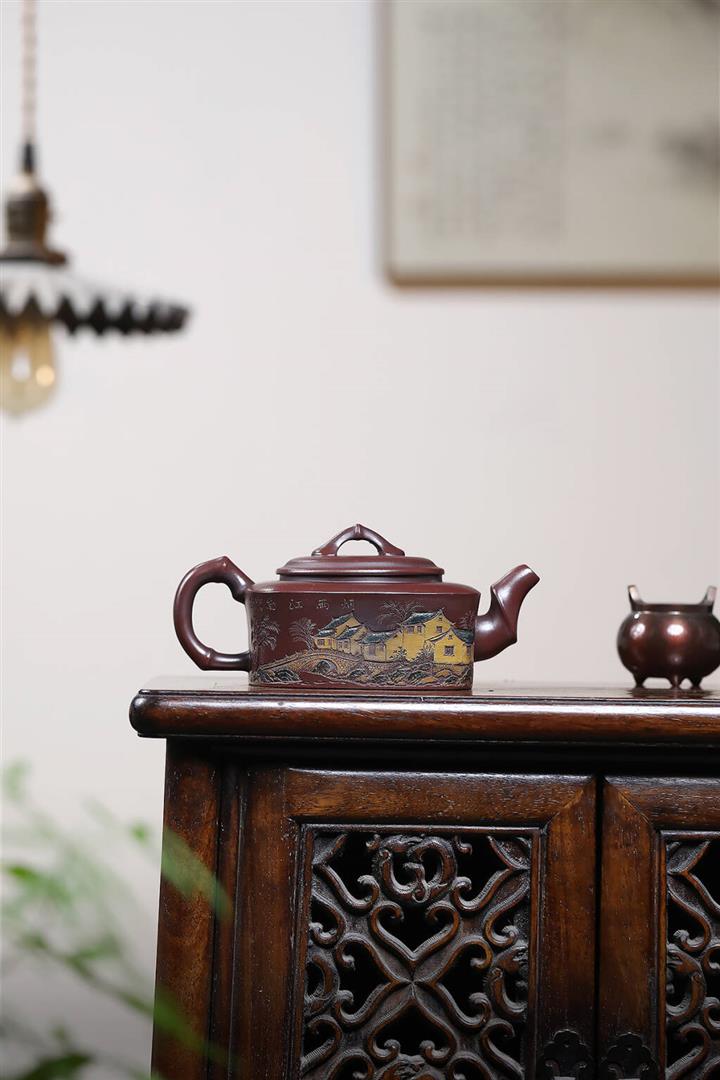 【作品介紹】此款壺形線條流暢,壺把,壺嘴,壺身壹氣呵成栩栩如生,是收藏把玩的好壺,泥料色澤古樸典雅,日久使用,漸露鋒芒,養成變化快,溫潤莊重,用其泡茶,使用的年代久,壺身就溫潤,泡出來的茶湯也就醇郁芳馨。