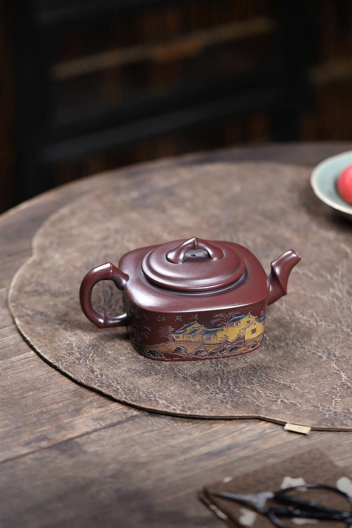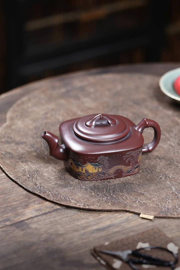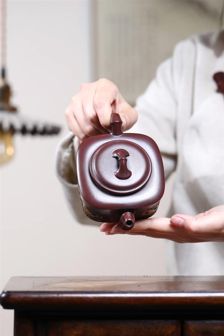 240cc原礦古烏泥彩刻四方竹節茶壺POT9148