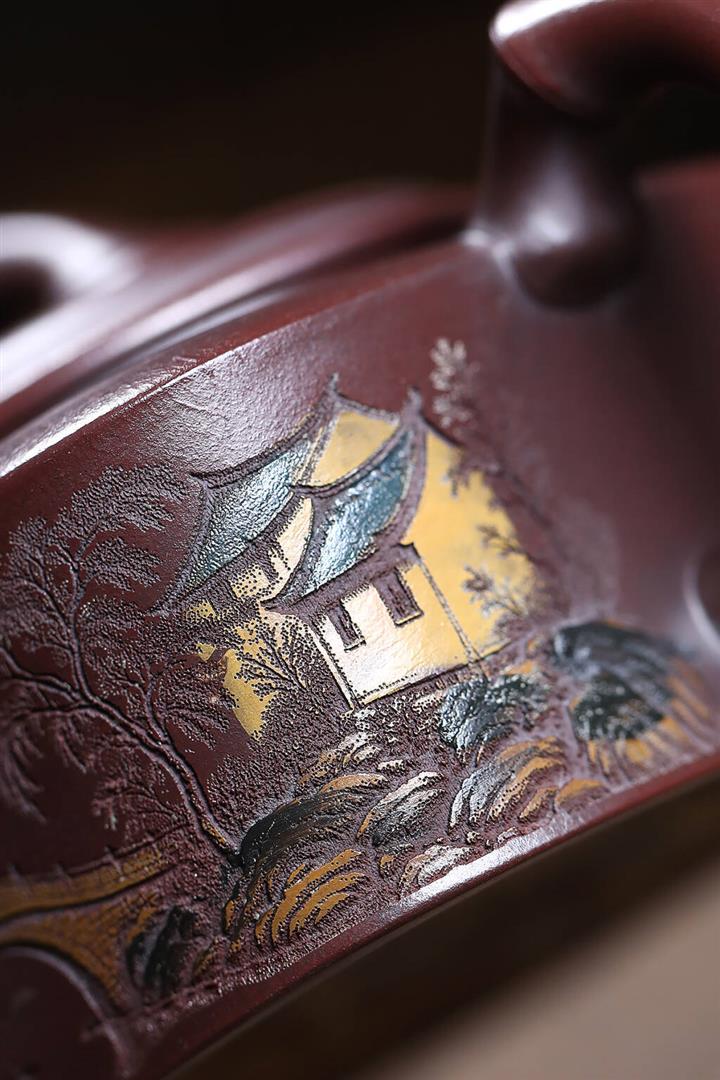380cc原礦段泥火雲燒花鳥秦權茶壺POT9154