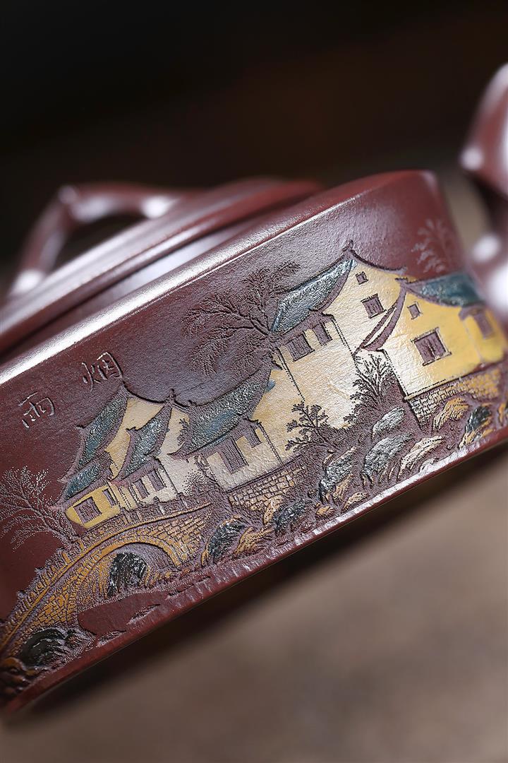 150cc原礦綠泥雙刀刻繪文心漢瓦茶壺POT9151