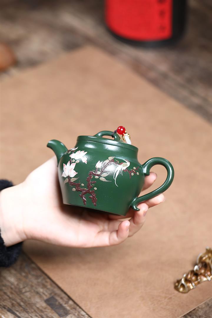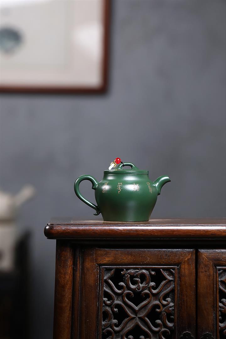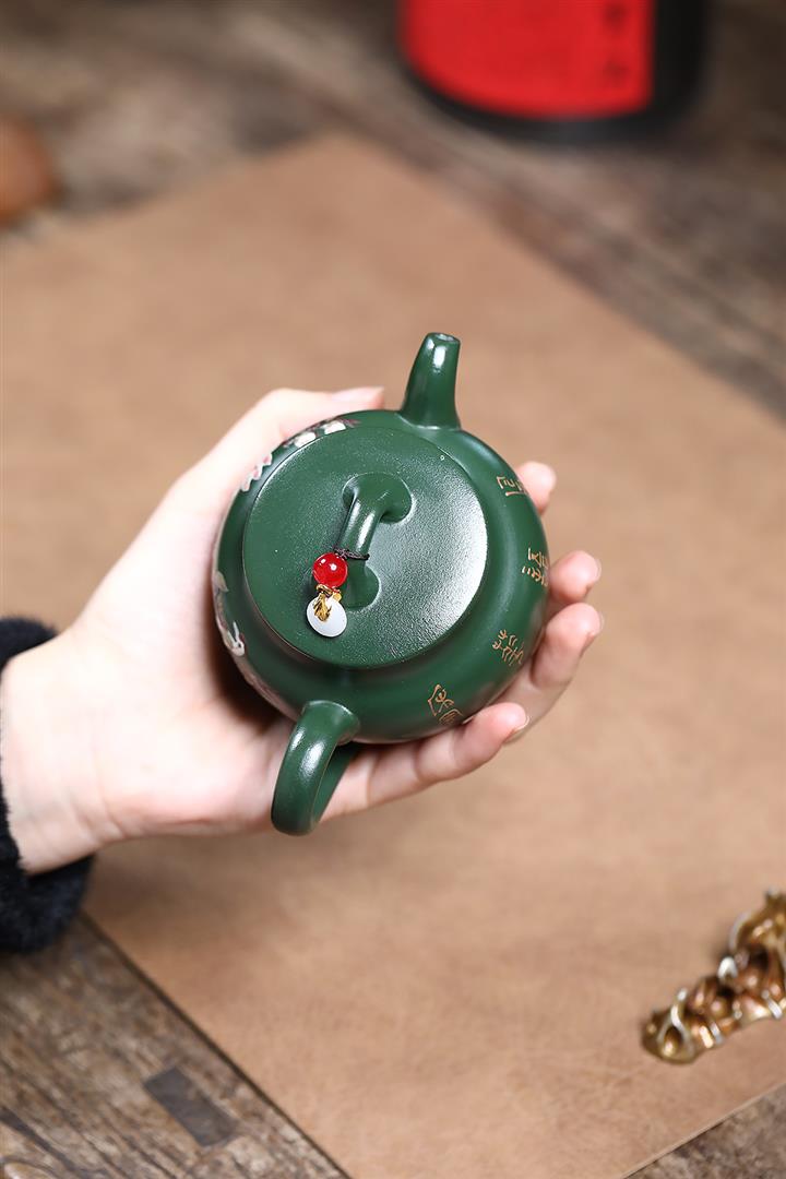 170cc原礦綠泥描金寒江泡茶壺POT9166