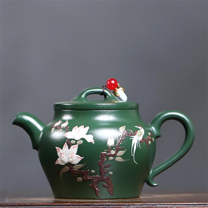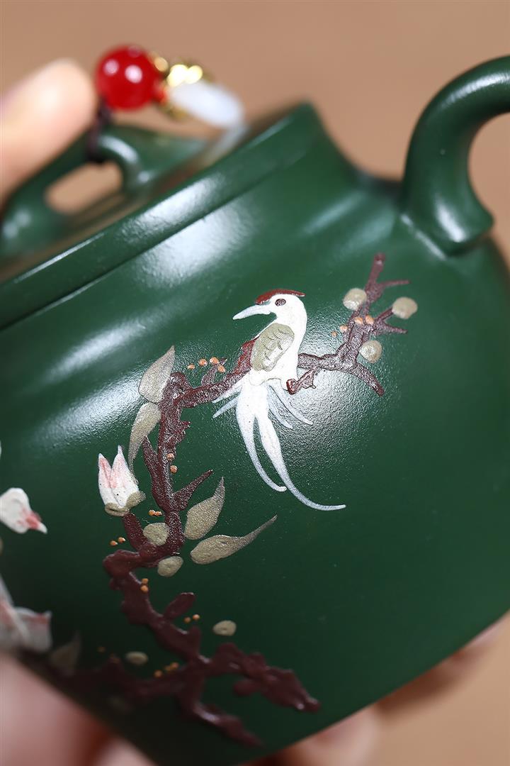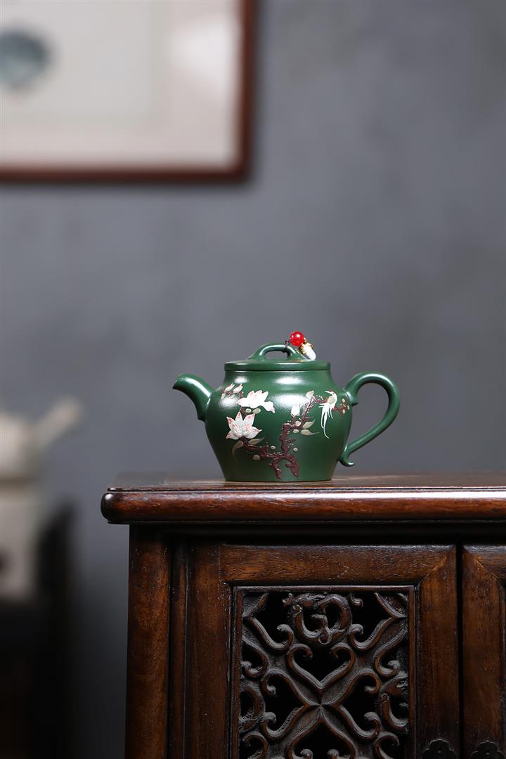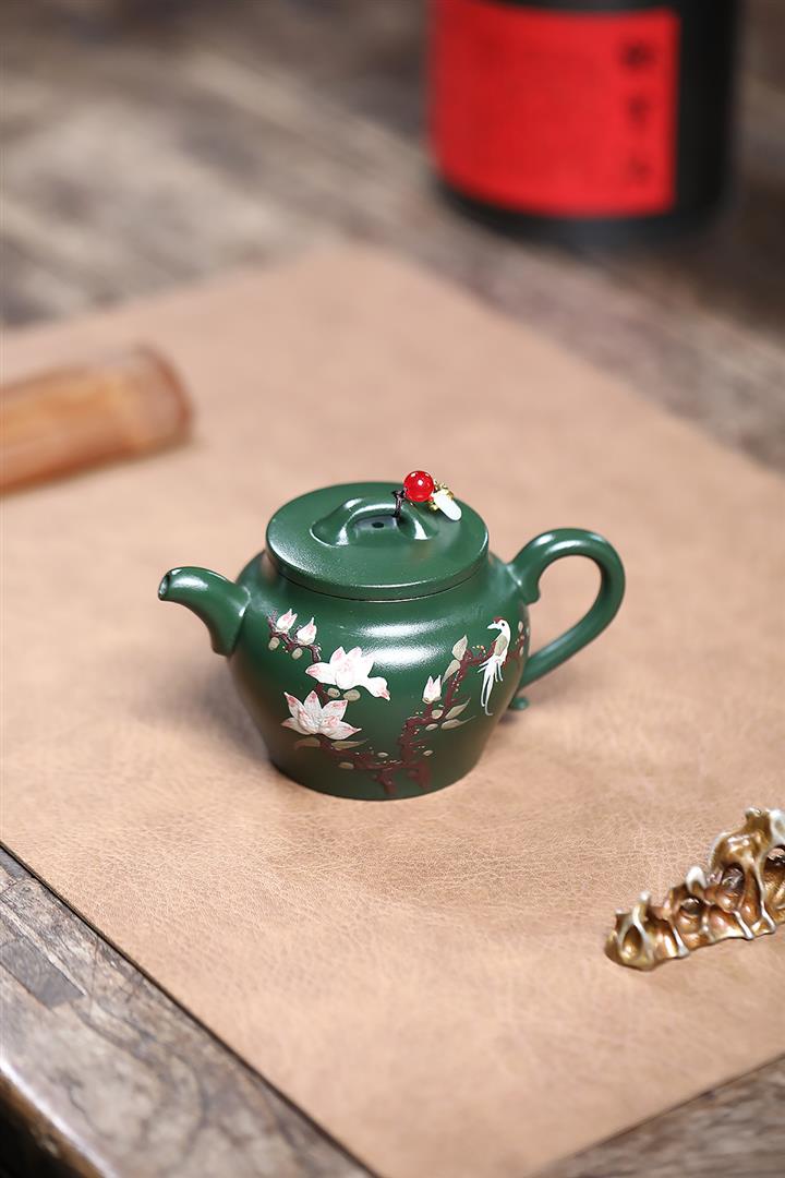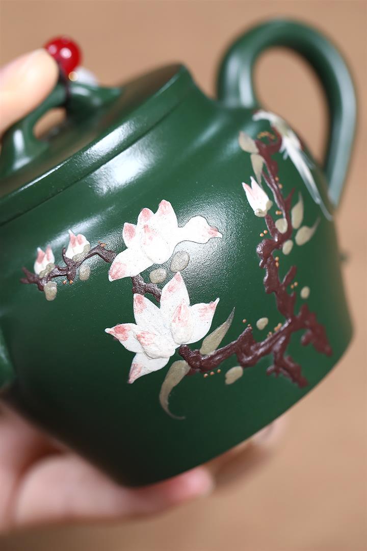 190cc原礦綠泥泥繪喜上眉梢泡茶壺POT9157