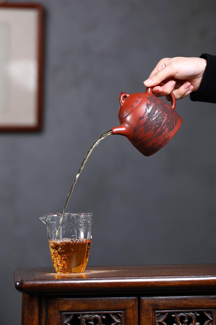 【泥料特點】砂土氣重,似淳實農民,日久使用,漸露鋒芒,養成變化,溫潤莊重。紫砂是壹種雙重氣孔結構的多孔性材質,氣孔微細,密度高。用紫砂壺沏茶,不失原味,且香不渙散,得茶之真香真味。紫砂使用越久,壺身色澤越發光亮照人,氣韻溫雅。紫砂壺長久使用器身會因撫摸擦拭,變得越發溫潤光澤。