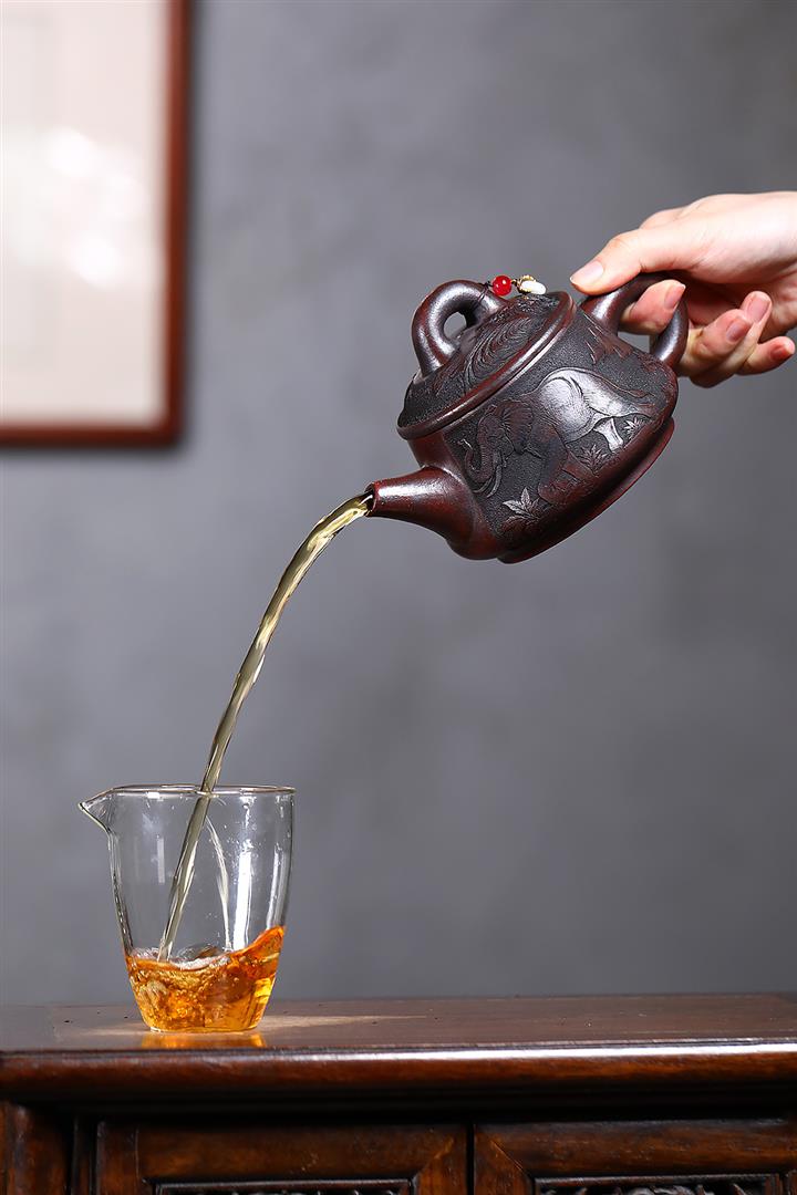 【泥料特點】砂土氣重,似淳實農民,日久使用,漸露鋒芒,養成變化,溫潤莊重。紫砂是壹種雙重氣孔結構的多孔性材質,氣孔微細,密度高。用紫砂壺沏茶,不失原味,且香不渙散,得茶之真香真味。紫砂使用越久,壺身色澤越發光亮照人,氣韻溫雅。紫砂壺長久使用器身會因撫摸擦拭,變得越發溫潤光澤。