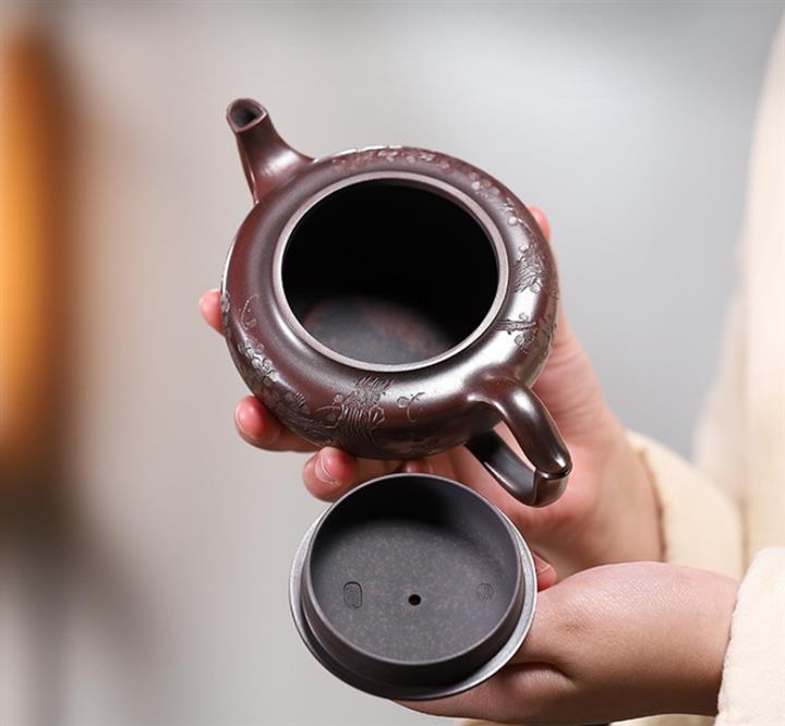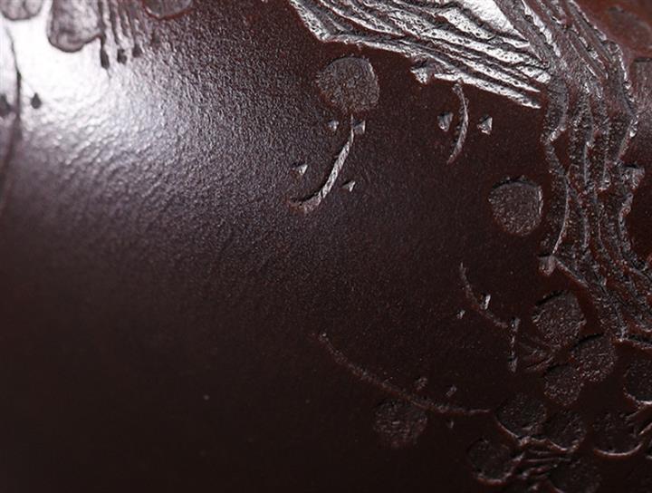 【泥料特點】砂土氣重,似淳實農民,日久使用,漸露鋒芒,養成變化,溫潤莊重。紫砂是壹種雙重氣孔結構的多孔性材質,氣孔微細,密度高。用紫砂壺沏茶,不失原味,且香不渙散,得茶之真香真味。紫砂使用越久,壺身色澤越發光亮照人,氣韻溫雅。紫砂壺長久使用器身會因撫摸擦拭,變得越發溫潤光澤。
