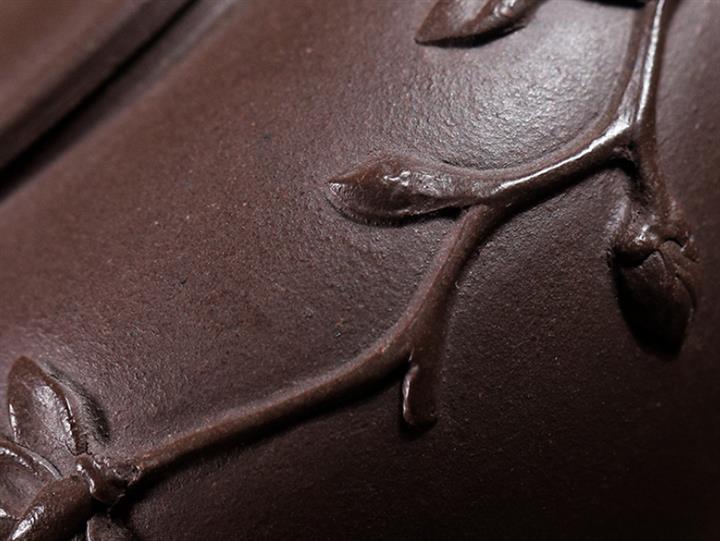 【泥料特點】砂土氣重,似淳實農民,日久使用,漸露鋒芒,養成變化,溫潤莊重。紫砂是壹種雙重氣孔結構的多孔性材質,氣孔微細,密度高。用紫砂壺沏茶,不失原味,且香不渙散,得茶之真香真味。紫砂使用越久,壺身色澤越發光亮照人,氣韻溫雅。紫砂壺長久使用器身會因撫摸擦拭,變得越發溫潤光澤。