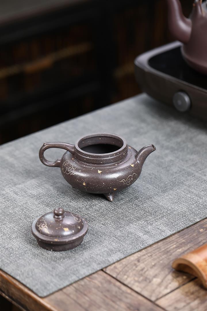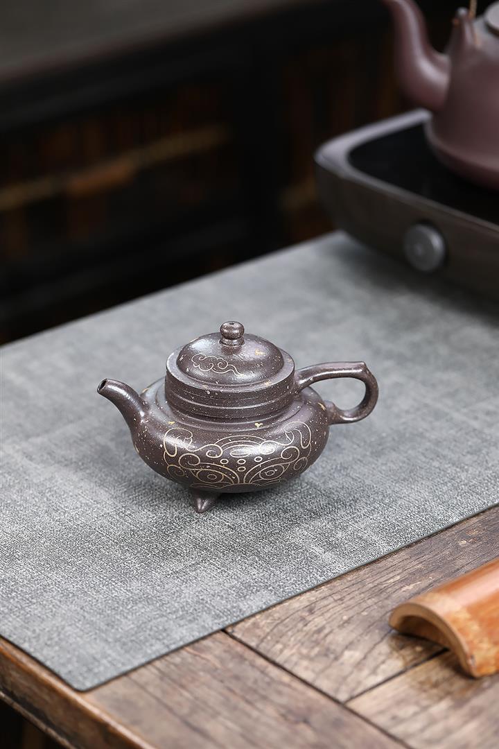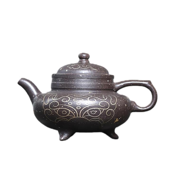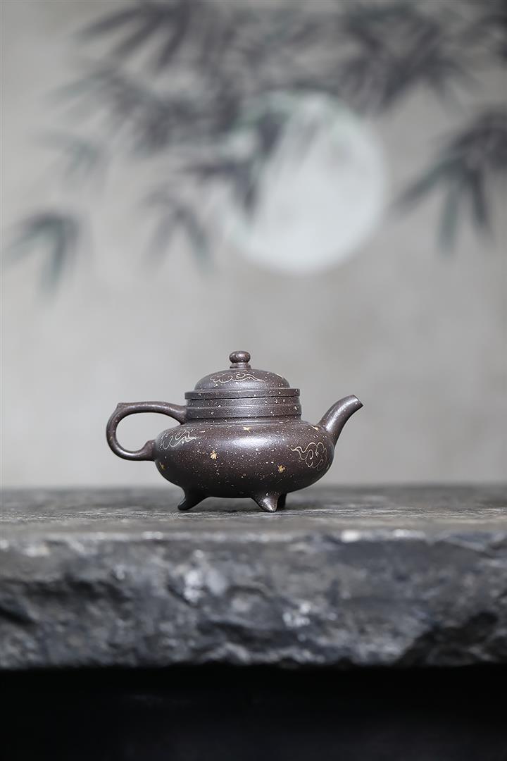 280cc原礦古烏泥刻繪般若禪韻飛把茶壺POT9197