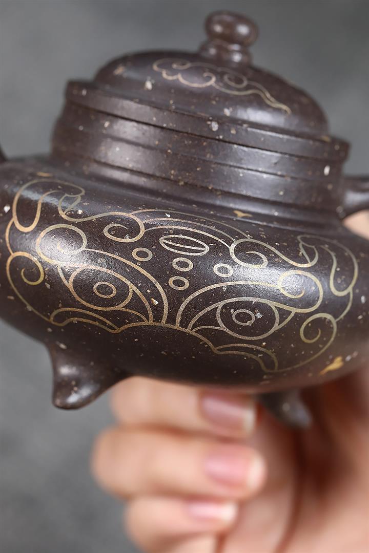 150cc原礦葵黃朱泥三足周盤茶壺POT9202