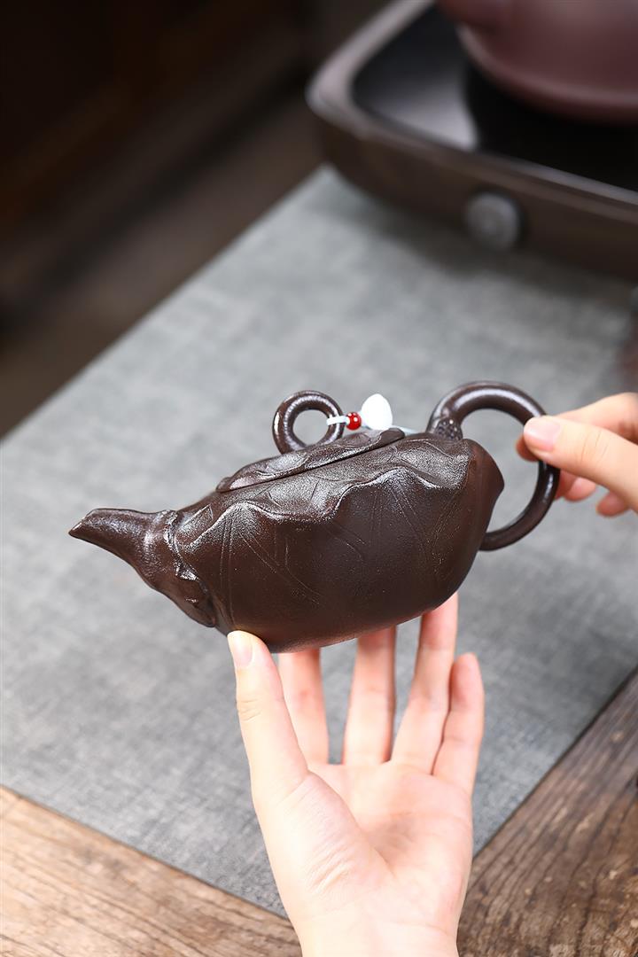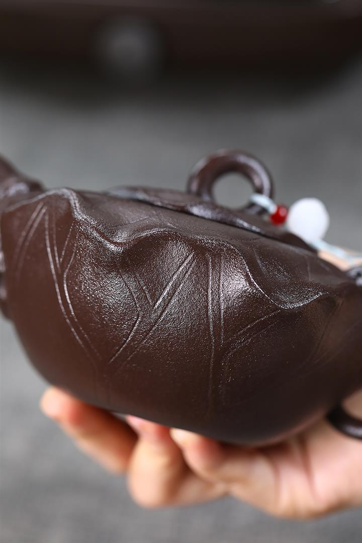 370cc原礦紫泥魚趣線瓢茶壺POT9204