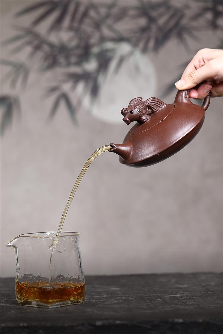 370cc原礦紫泥魚趣線瓢茶壺POT9204