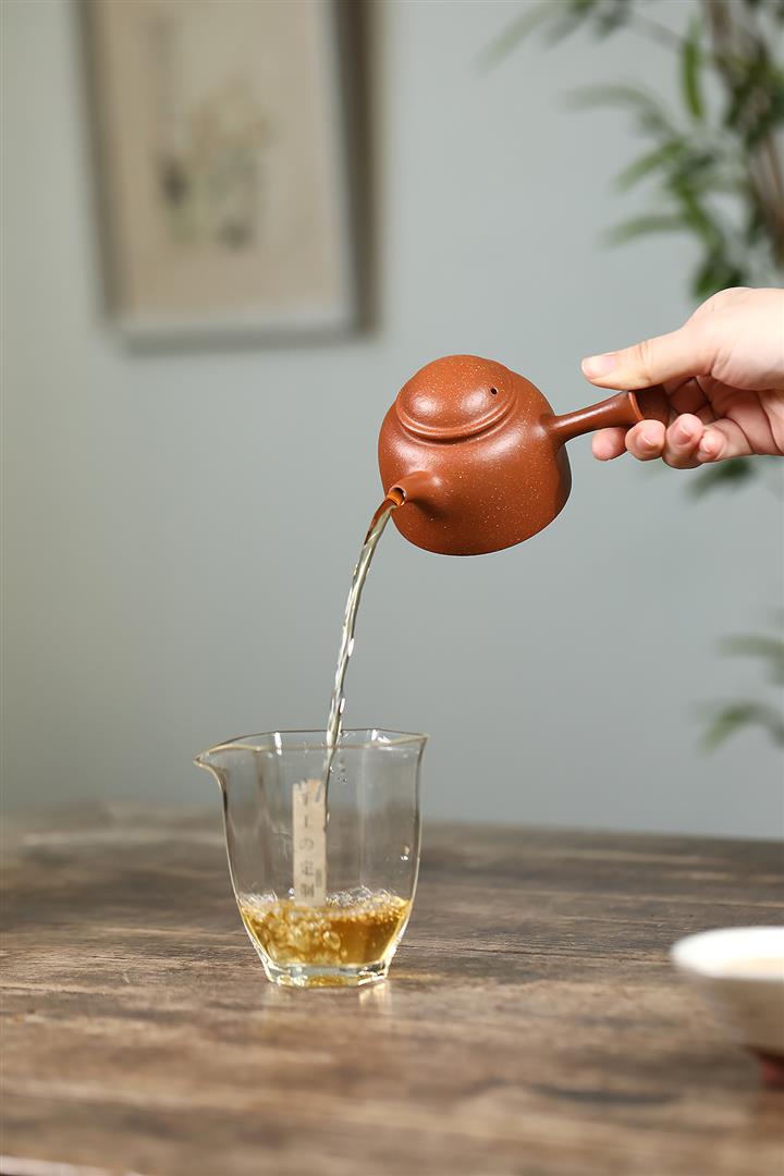 【泥料特點】砂土氣重,似淳實農民,日久使用,漸露鋒芒,養成變化,溫潤莊重。紫砂是壹種雙重氣孔結構的多孔性材質,氣孔微細,密度高。用紫砂壺沏茶,不失原味,且香不渙散,得茶之真香真味。紫砂使用越久,壺身色澤越發光亮照人,氣韻溫雅。紫砂壺長久使用器身會因撫摸擦拭,變得越發溫潤光澤。