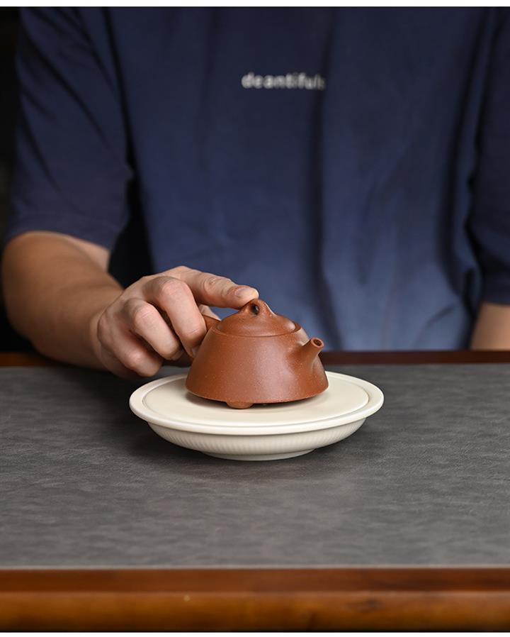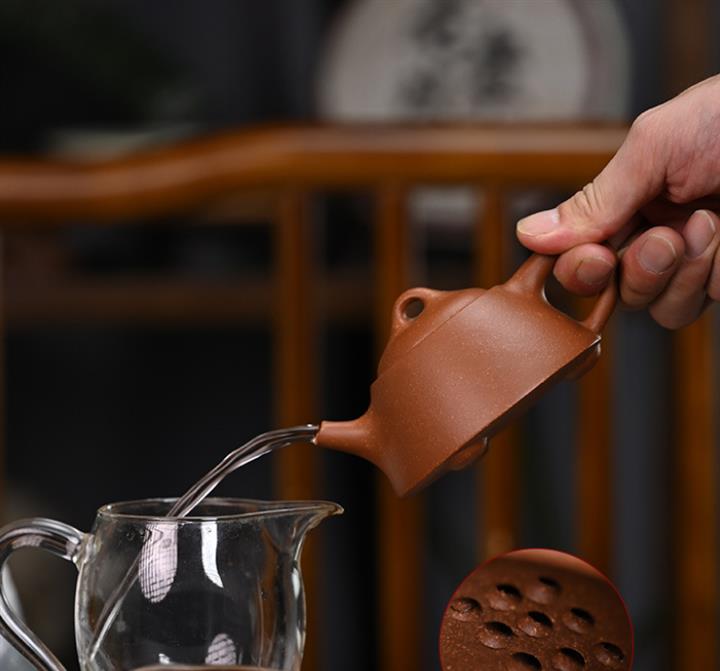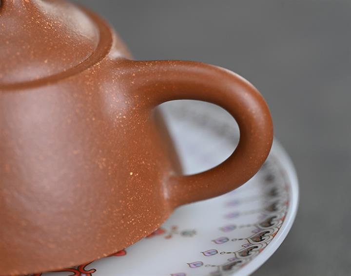 【泥料特點】砂土氣重,似淳實農民,日久使用,漸露鋒芒,養成變化,溫潤莊重。紫砂是壹種雙重氣孔結構的多孔性材質,氣孔微細,密度高。用紫砂壺沏茶,不失原味,且香不渙散,得茶之真香真味。紫砂使用越久,壺身色澤越發光亮照人,氣韻溫雅。紫砂壺長久使用器身會因撫摸擦拭,變得越發溫潤光澤。
