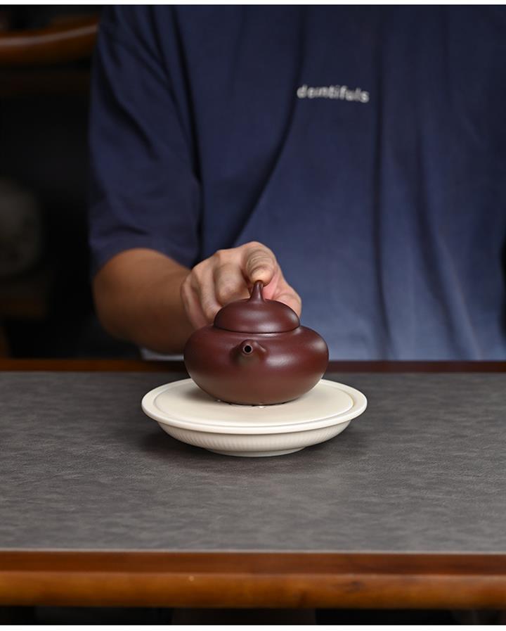 【泥料特點】砂土氣重,似淳實農民,日久使用,漸露鋒芒,養成變化,溫潤莊重。紫砂是壹種雙重氣孔結構的多孔性材質,氣孔微細,密度高。用紫砂壺沏茶,不失原味,且香不渙散,得茶之真香真味。紫砂使用越久,壺身色澤越發光亮照人,氣韻溫雅。紫砂壺長久使用器身會因撫摸擦拭,變得越發溫潤光澤。