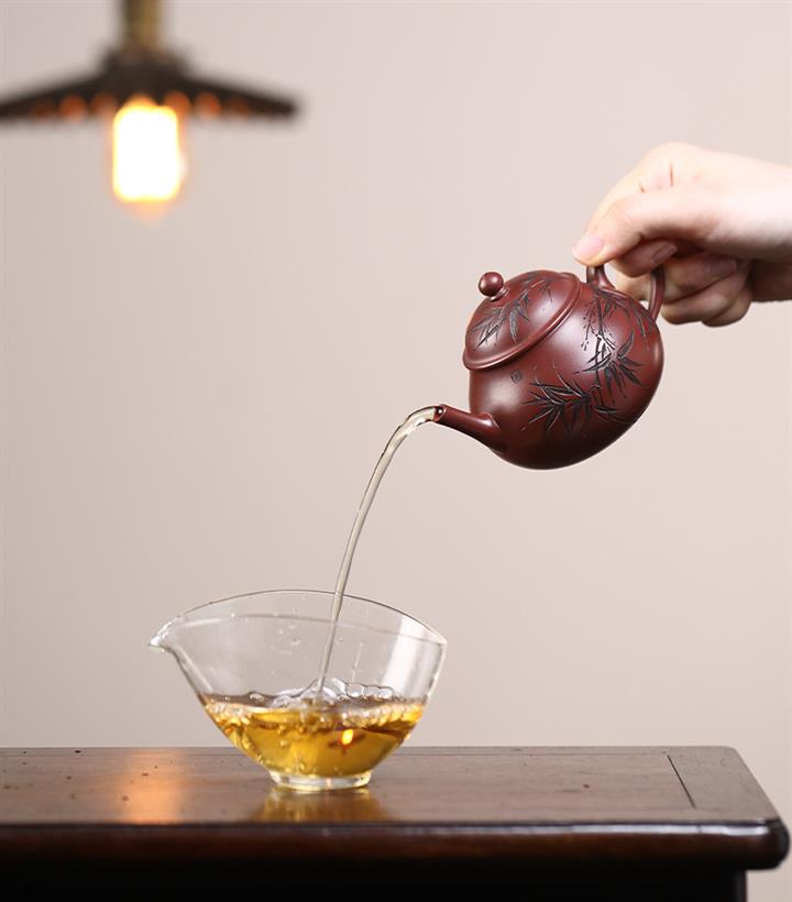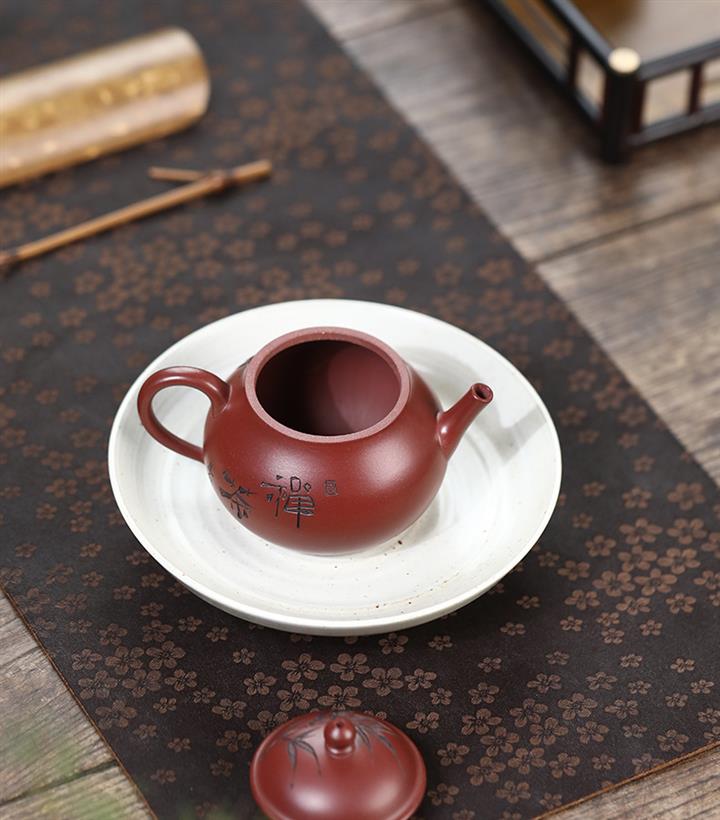 【泥料特點】砂土氣重,似淳實農民,日久使用,漸露鋒芒,養成變化,溫潤莊重。紫砂是壹種雙重氣孔結構的多孔性材質,氣孔微細,密度高。用紫砂壺沏茶,不失原味,且香不渙散,得茶之真香真味。紫砂使用越久,壺身色澤越發光亮照人,氣韻溫雅。紫砂壺長久使用器身會因撫摸擦拭,變得越發溫潤光澤。