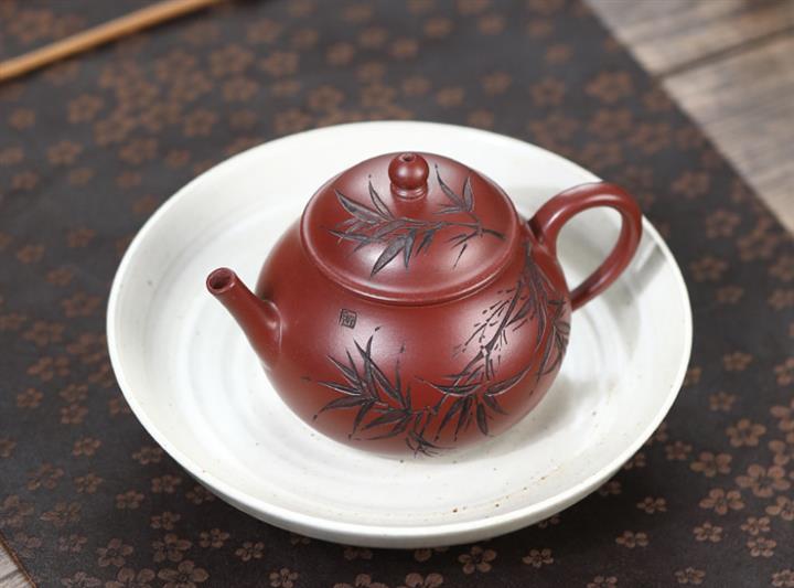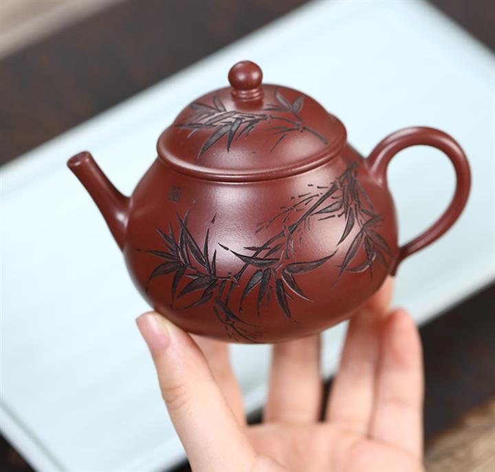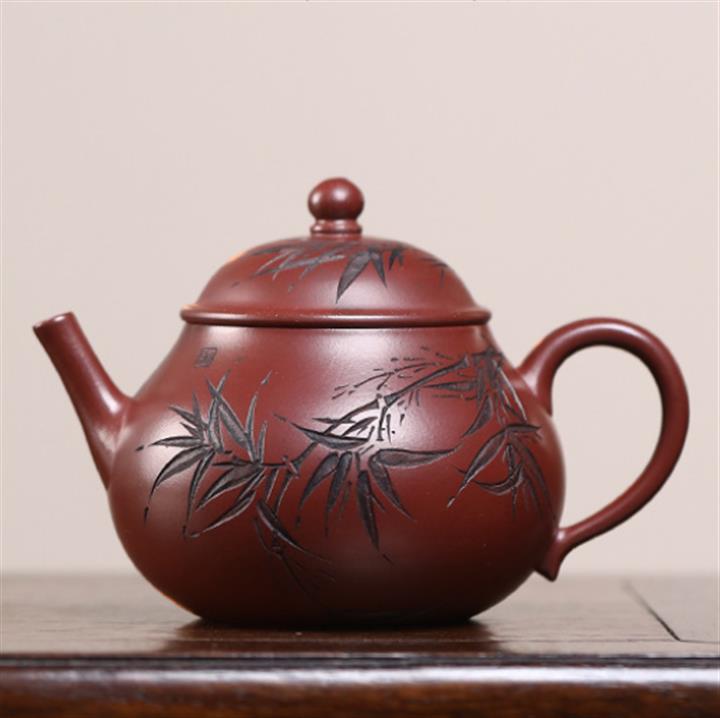 170cc/190cc原礦降坡泥/紫泥陶刻竹葉子冶石瓢茶壺POT9228