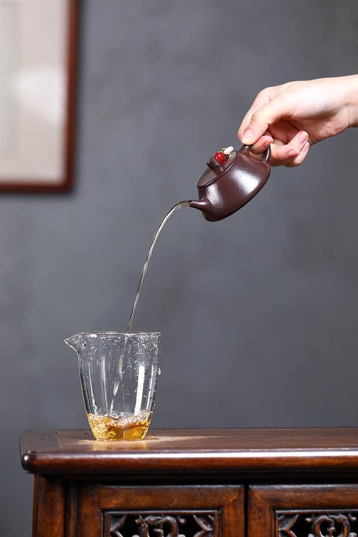 【泥料特點】砂土氣重,似淳實農民,日久使用,漸露鋒芒,養成變化,溫潤莊重。紫砂是壹種雙重氣孔結構的多孔性材質,氣孔微細,密度高。用紫砂壺沏茶,不失原味,且香不渙散,得茶之真香真味。紫砂使用越久,壺身色澤越發光亮照人,氣韻溫雅。紫砂壺長久使用器身會因撫摸擦拭,變得越發溫潤光澤。
