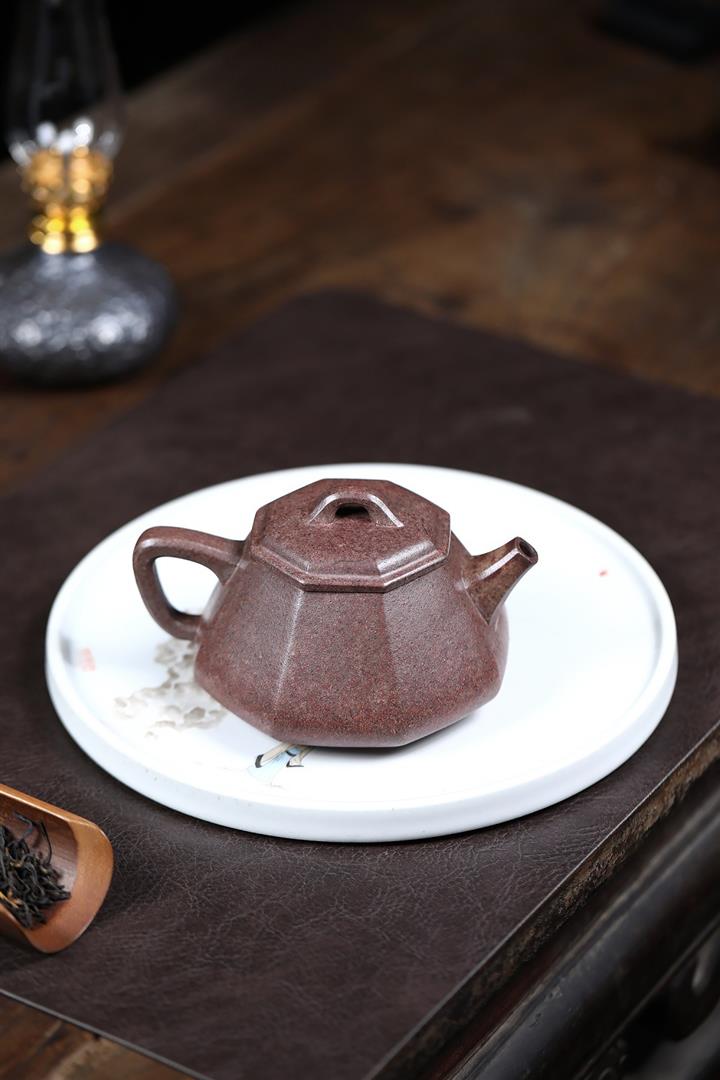 【泥料特點】砂土氣重,似淳實農民,日久使用,漸露鋒芒,養成變化,溫潤莊重。紫砂是壹種雙重氣孔結構的多孔性材質,氣孔微細,密度高。用紫砂壺沏茶,不失原味,且香不渙散,得茶之真香真味。紫砂使用越久,壺身色澤越發光亮照人,氣韻溫雅。紫砂壺長久使用器身會因撫摸擦拭,變得越發溫潤光澤。