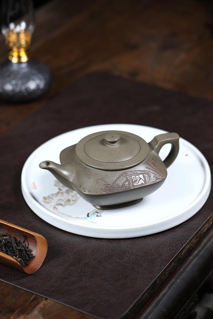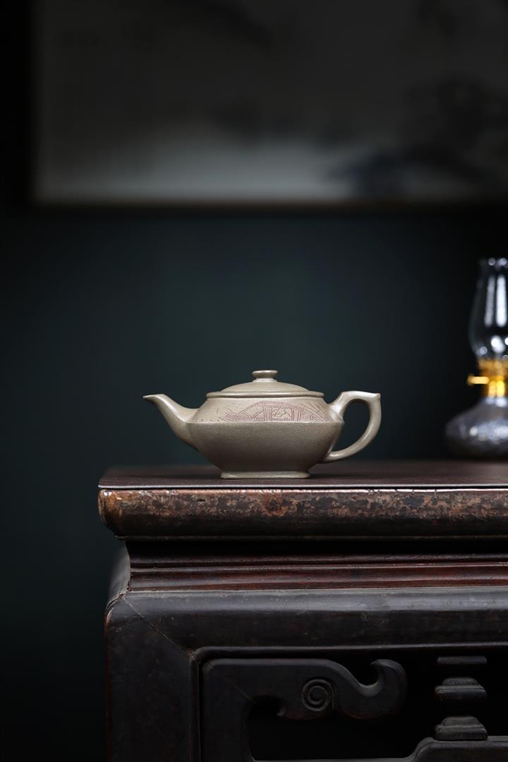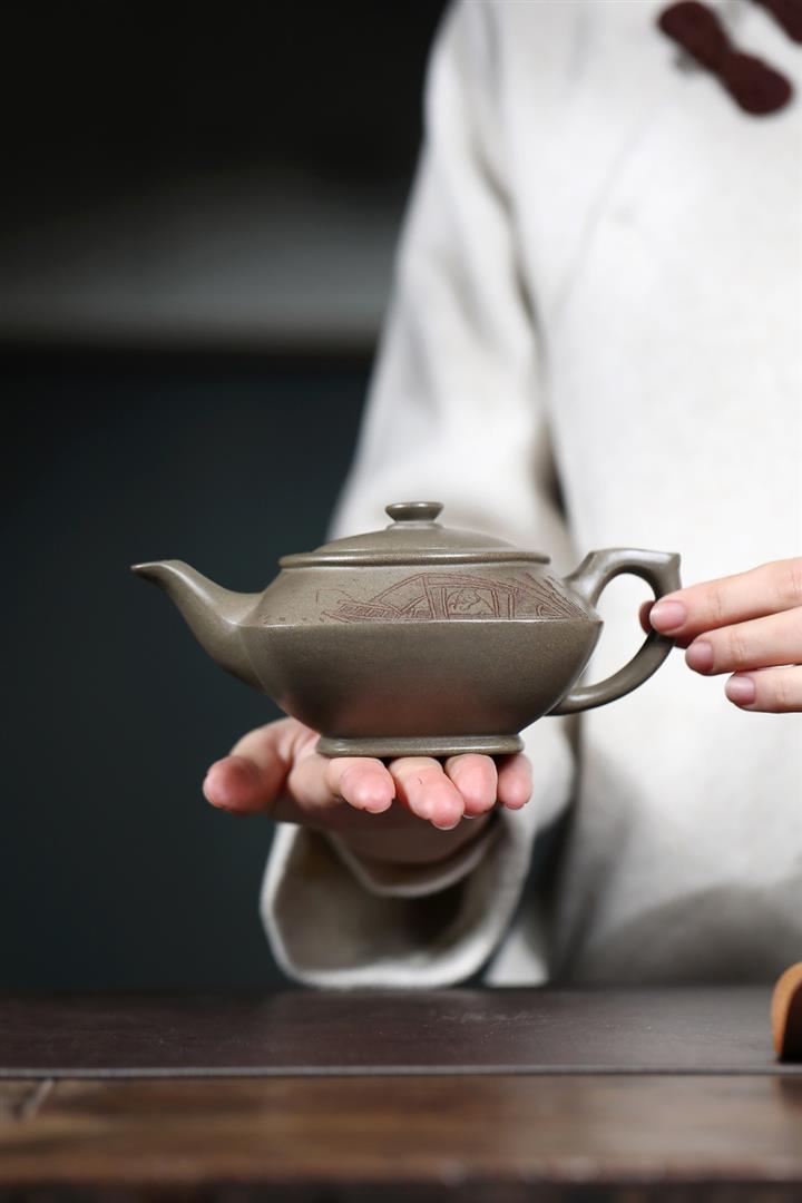 320cc原礦青灰段寒江獨釣茶壺POT9234
