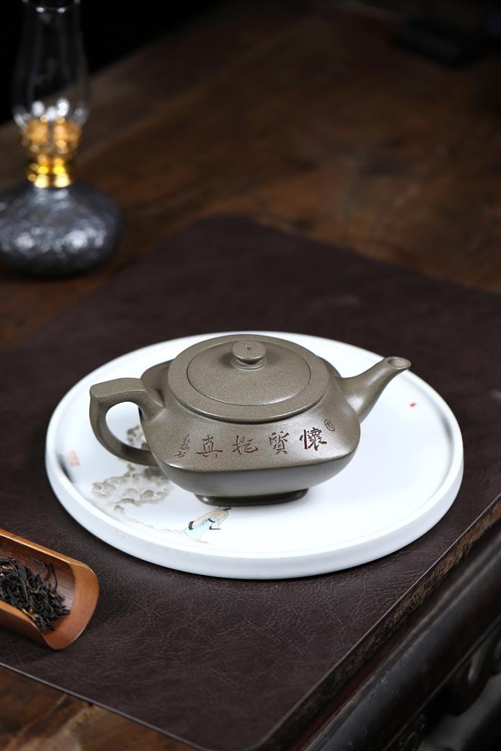 【作品介紹】此款壺形線條流暢,壺把,壺嘴,壺身壹氣呵成栩栩如生,是收藏把玩的好壺,泥料色澤古樸典雅,日久使用,漸露鋒芒,養成變化快,溫潤莊重,用其泡茶,使用的年代久,壺身就溫潤,泡出來的茶湯也就醇郁芳馨。