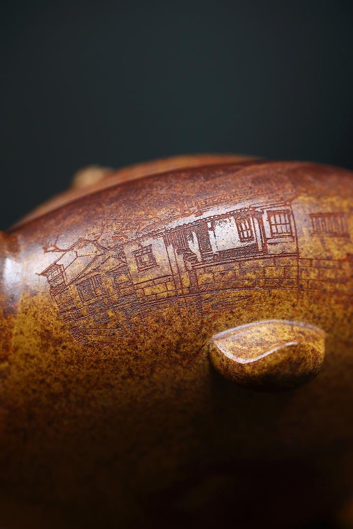 【作品介紹】此款壺形線條流暢,壺把,壺嘴,壺身壹氣呵成栩栩如生,是收藏把玩的好壺,泥料色澤古樸典雅,日久使用,漸露鋒芒,養成變化快,溫潤莊重,用其泡茶,使用的年代久,壺身就溫潤,泡出來的茶湯也就醇郁芳馨。