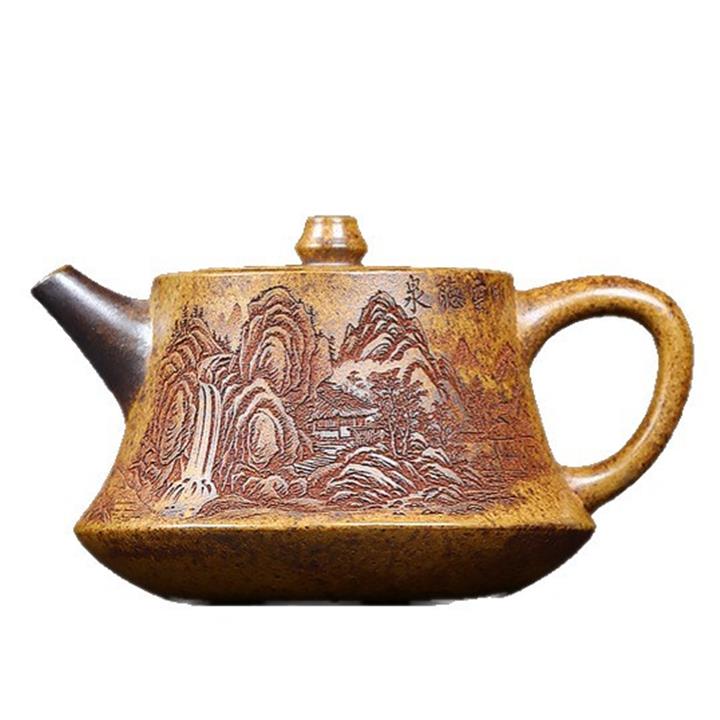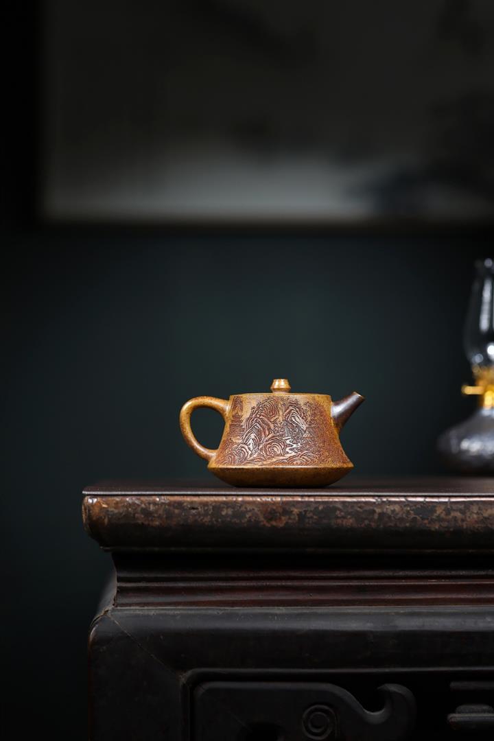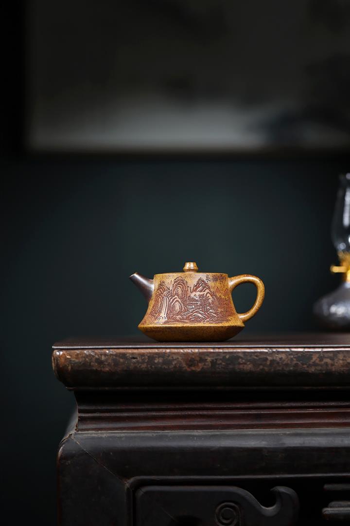 200cc原礦龍骨金砂柴燒金方茶壺POT9241