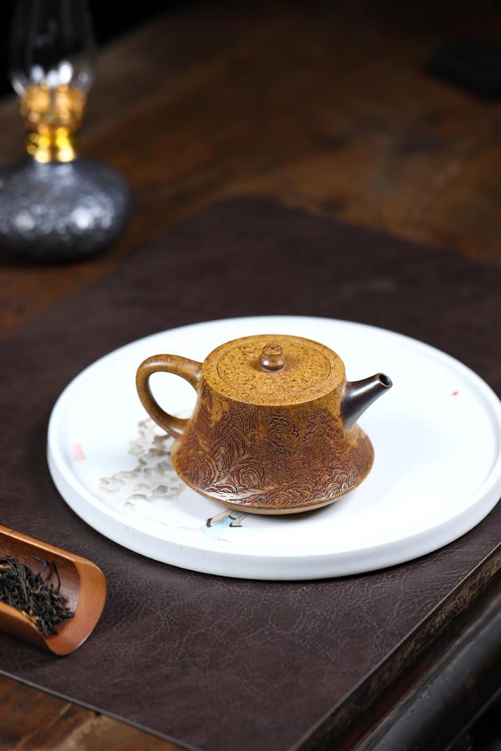 【作品介紹】此款壺形線條流暢,壺把,壺嘴,壺身壹氣呵成栩栩如生,是收藏把玩的好壺,泥料色澤古樸典雅,日久使用,漸露鋒芒,養成變化快,溫潤莊重,用其泡茶,使用的年代久,壺身就溫潤,泡出來的茶湯也就醇郁芳馨。