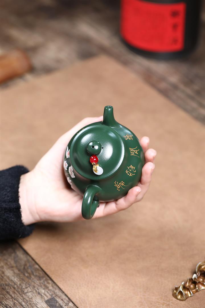 180cc原礦翡翠綠泥蝶戀花潘壺茶壺POT9245