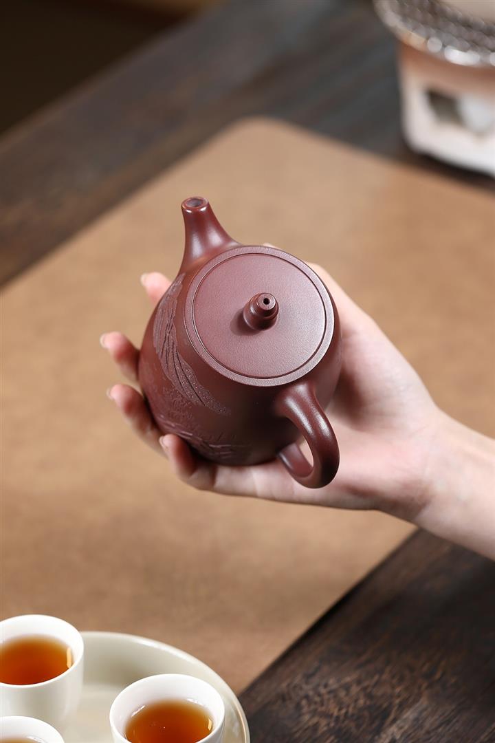 【作品介紹】此款壺形線條流暢,壺把,壺嘴,壺身壹氣呵成栩栩如生,是收藏把玩的好壺,泥料色澤古樸典雅,日久使用,漸露鋒芒,養成變化快,溫潤莊重,用其泡茶,使用的年代久,壺身就溫潤,泡出來的茶湯也就醇郁芳馨。
