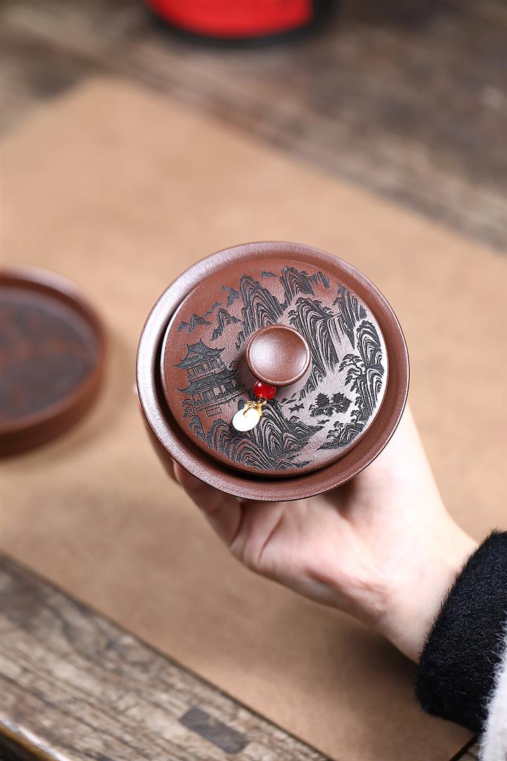 200cc原礦底槽清觀山三才蓋碗POT9257