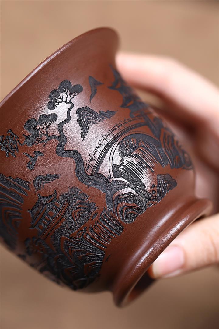 【泥料特點】砂土氣重,似淳實農民,日久使用,漸露鋒芒,養成變化,溫潤莊重。紫砂是壹種雙重氣孔結構的多孔性材質,氣孔微細,密度高。用紫砂壺沏茶,不失原味,且香不渙散,得茶之真香真味。紫砂使用越久,壺身色澤越發光亮照人,氣韻溫雅。紫砂壺長久使用器身會因撫摸擦拭,變得越發溫潤光澤。