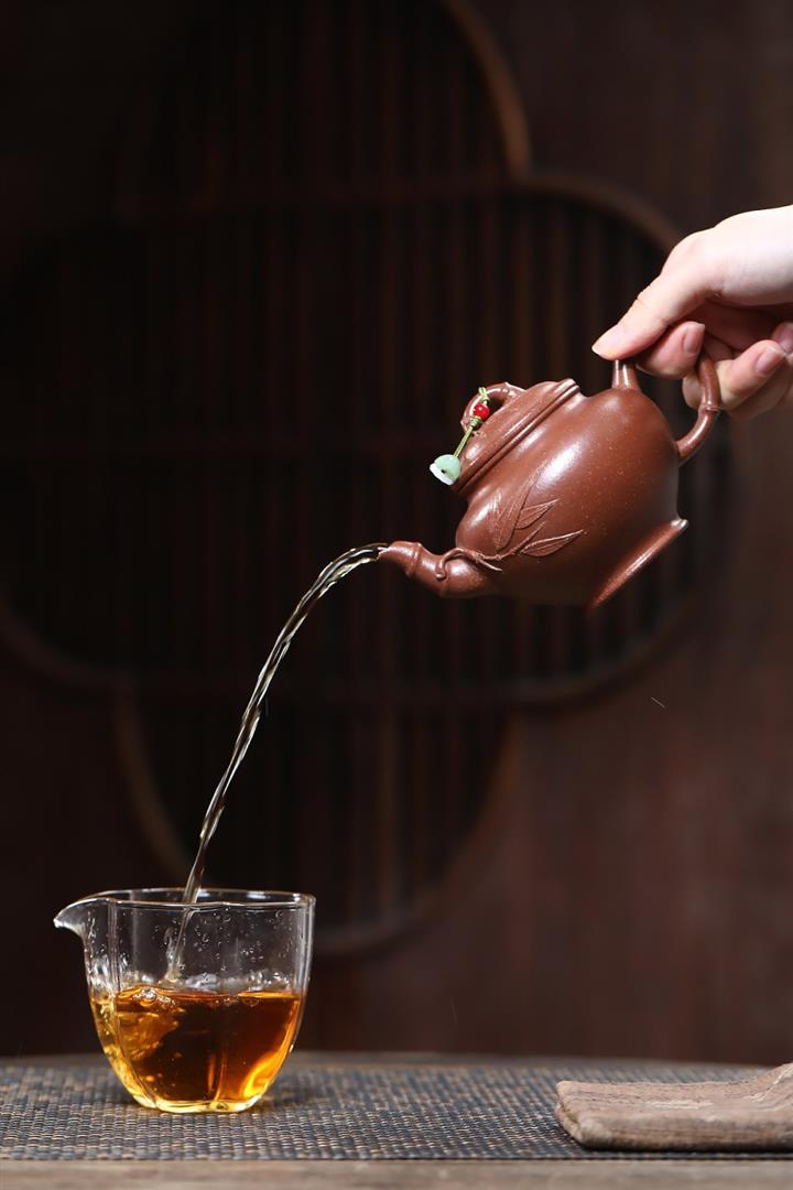 【泥料特點】砂土氣重,似淳實農民,日久使用,漸露鋒芒,養成變化,溫潤莊重。紫砂是壹種雙重氣孔結構的多孔性材質,氣孔微細,密度高。用紫砂壺沏茶,不失原味,且香不渙散,得茶之真香真味。紫砂使用越久,壺身色澤越發光亮照人,氣韻溫雅。紫砂壺長久使用器身會因撫摸擦拭,變得越發溫潤光澤。