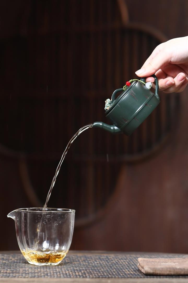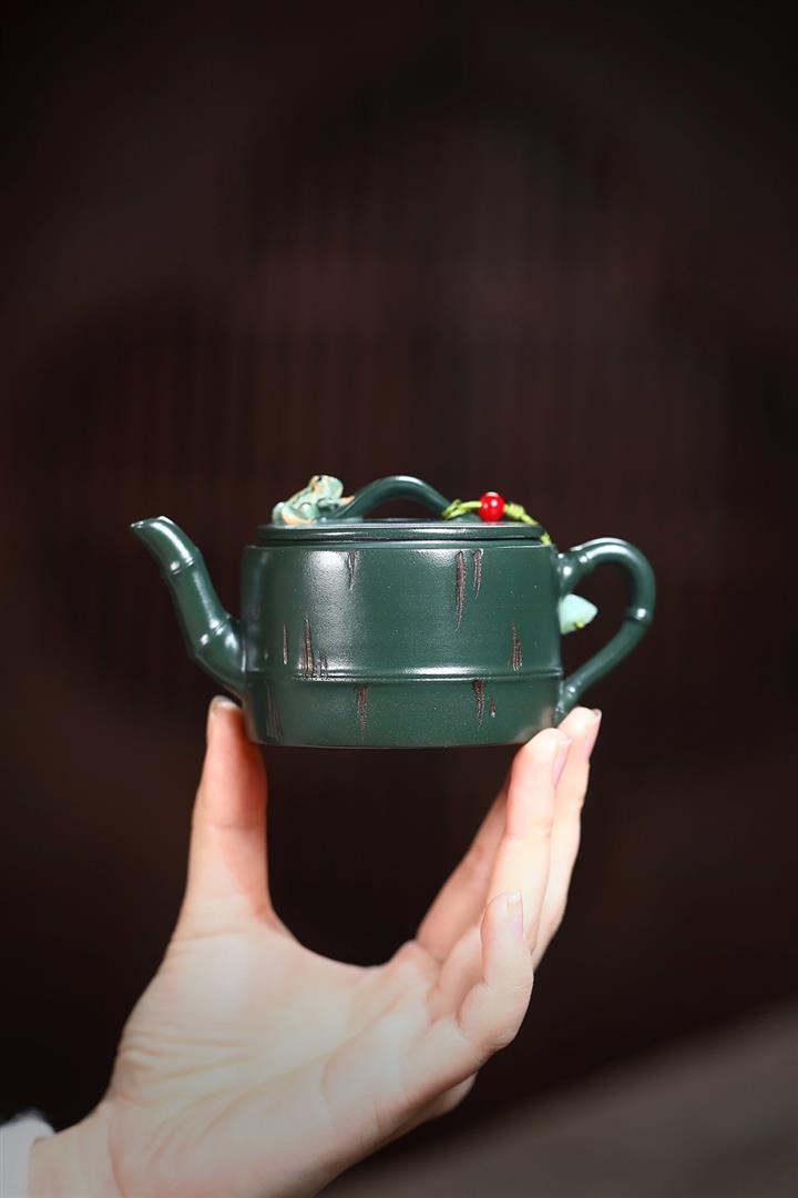 150cc原礦優質綠泥竹蛙聽雨茶壺POT9270
