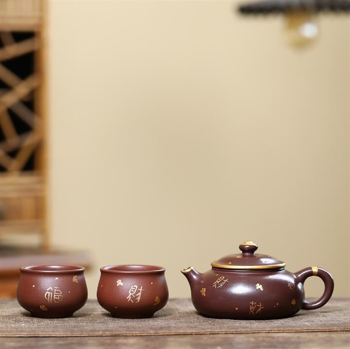 170cc原礦龍血砂描金合歡茶壺POT9279