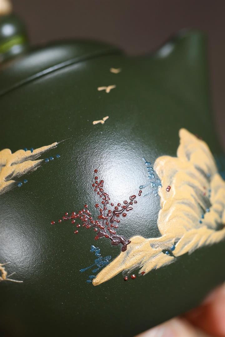 【泥料特點】砂土氣重,似淳實農民,日久使用,漸露鋒芒,養成變化,溫潤莊重。紫砂是壹種雙重氣孔結構的多孔性材質,氣孔微細,密度高。用紫砂壺沏茶,不失原味,且香不渙散,得茶之真香真味。紫砂使用越久,壺身色澤越發光亮照人,氣韻溫雅。紫砂壺長久使用器身會因撫摸擦拭,變得越發溫潤光澤。