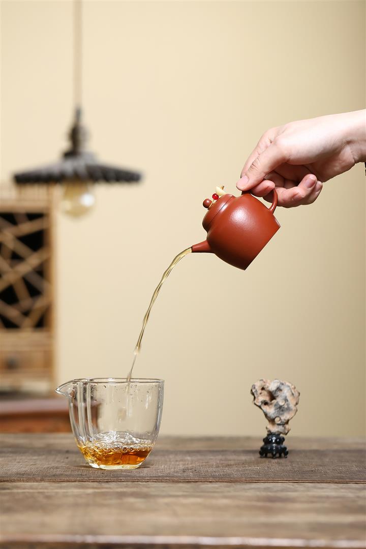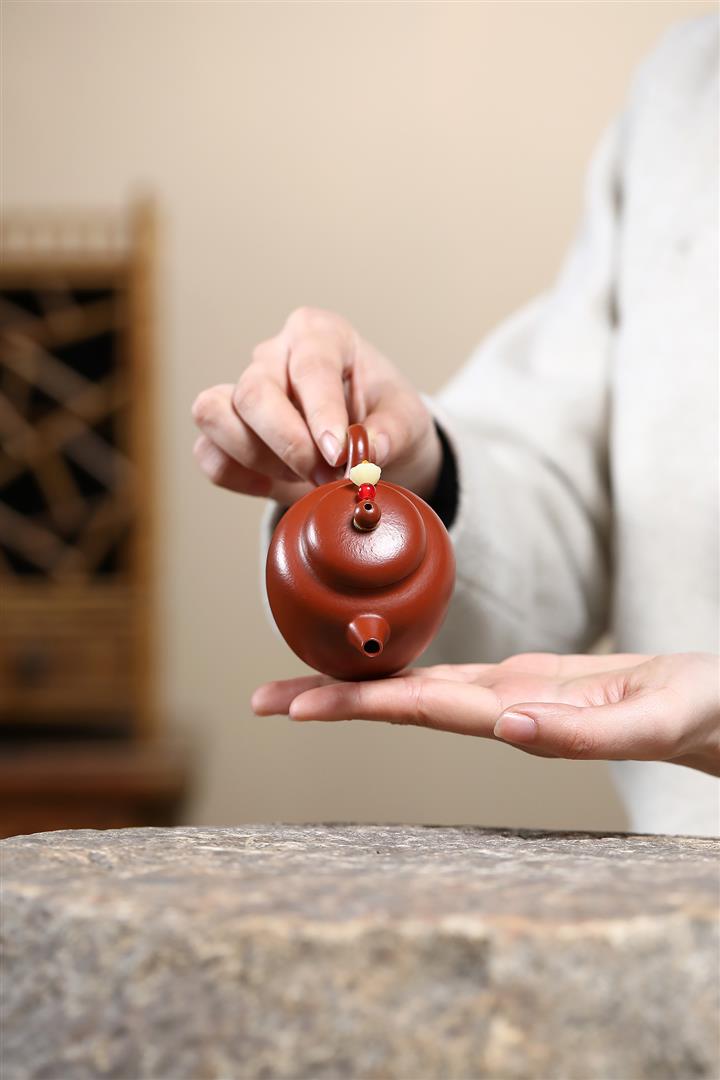 【泥料特點】砂土氣重,似淳實農民,日久使用,漸露鋒芒,養成變化,溫潤莊重。紫砂是壹種雙重氣孔結構的多孔性材質,氣孔微細,密度高。用紫砂壺沏茶,不失原味,且香不渙散,得茶之真香真味。紫砂使用越久,壺身色澤越發光亮照人,氣韻溫雅。紫砂壺長久使用器身會因撫摸擦拭,變得越發溫潤光澤。