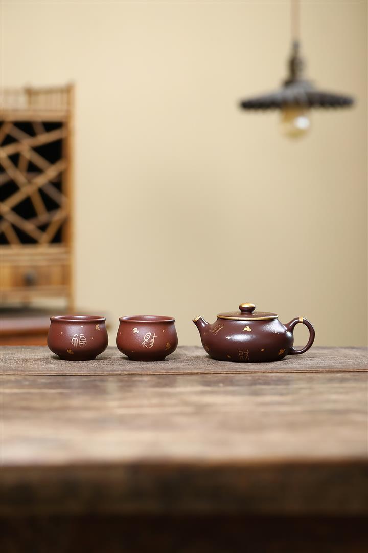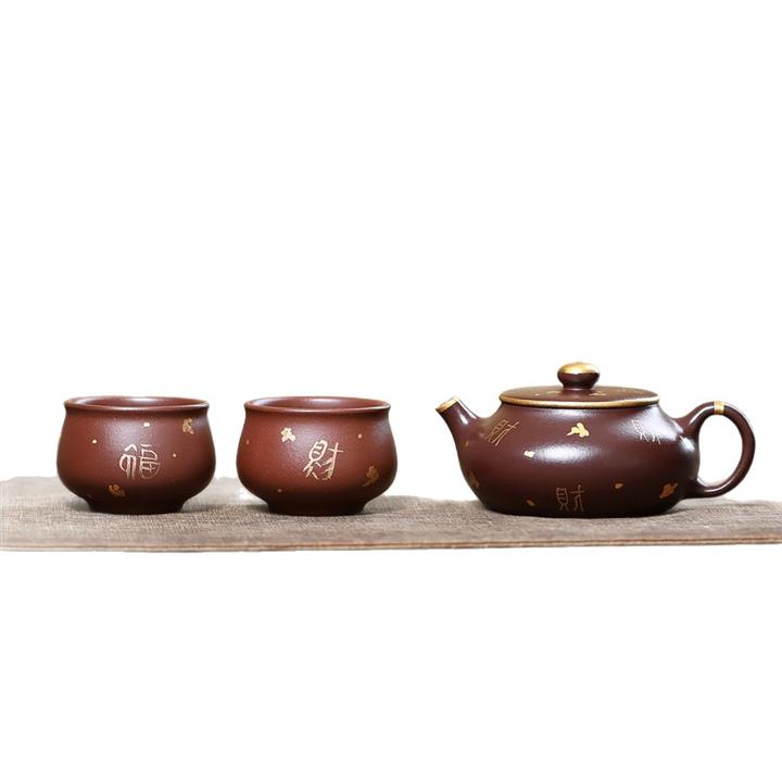 260cc原礦紫泥描金漢鐸壹壺兩杯茶壺POT9285