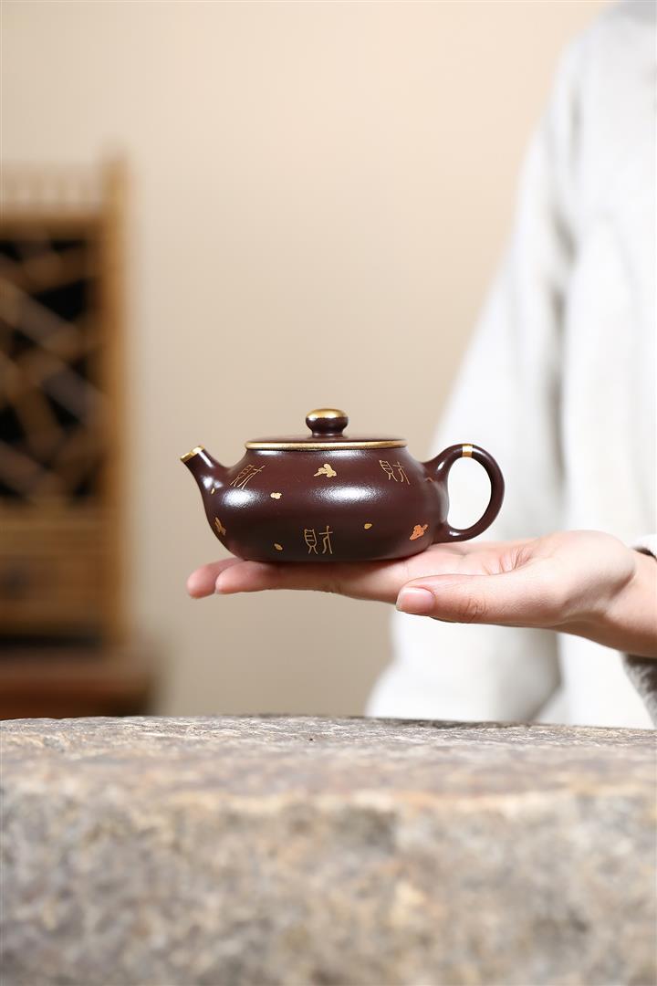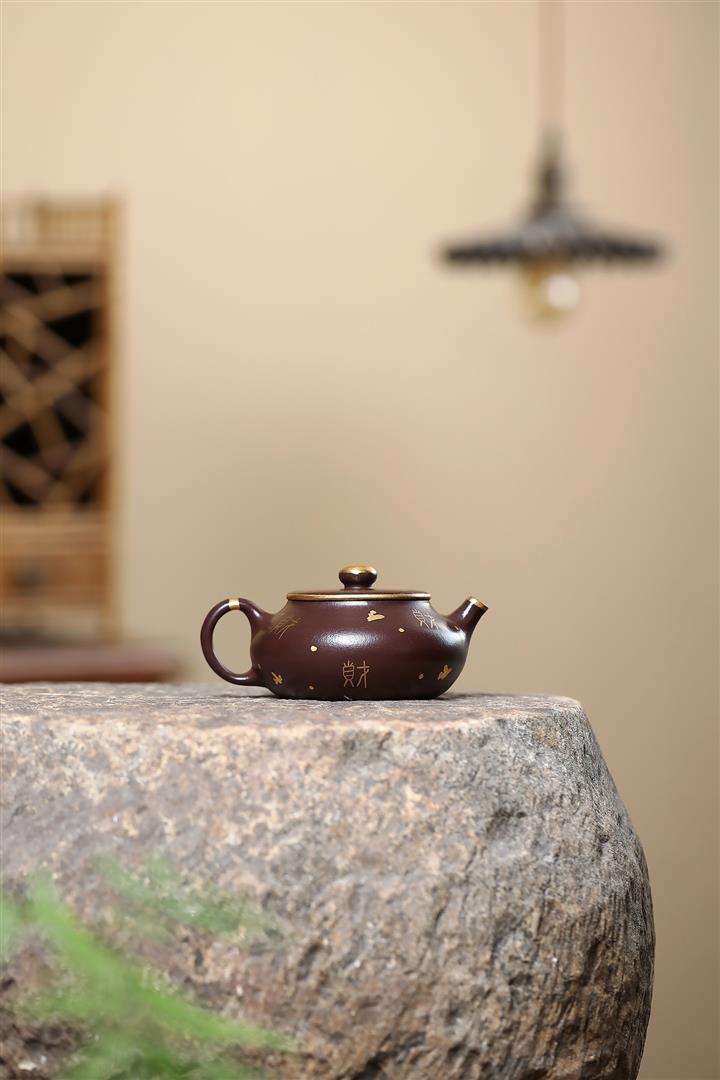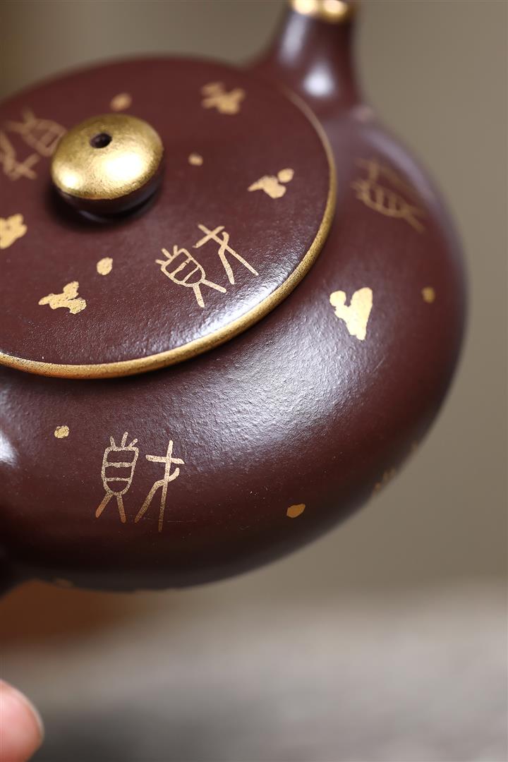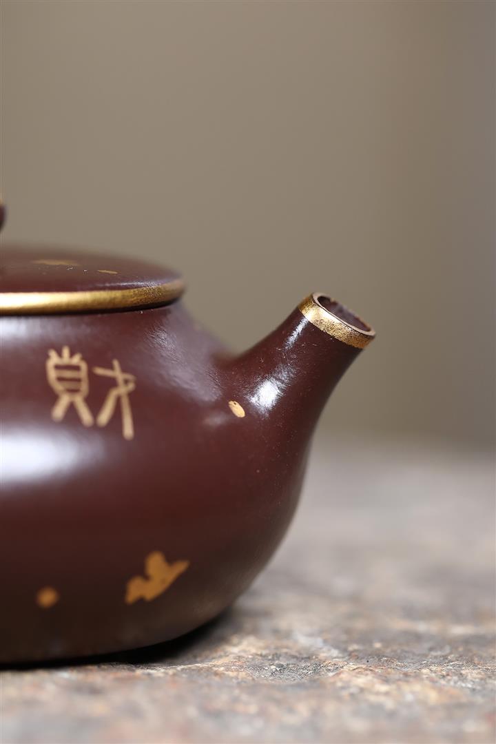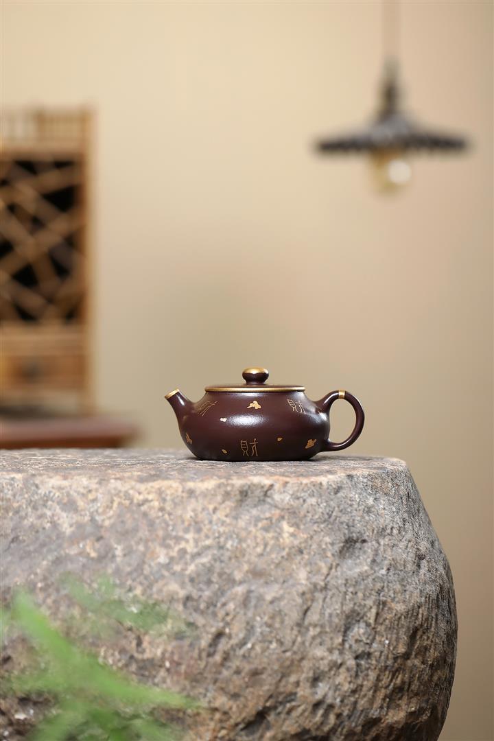 180cc原礦紫泥來財描金寒江茶壺POT9283
