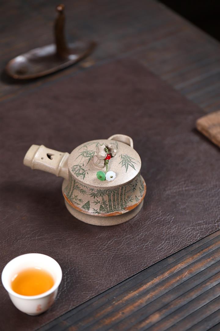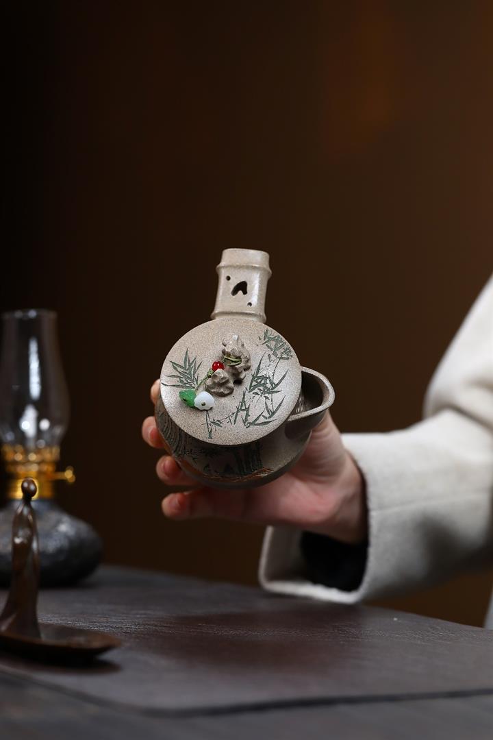 310cc原礦優質綠泥竹熊問鼎茶壺POT9298